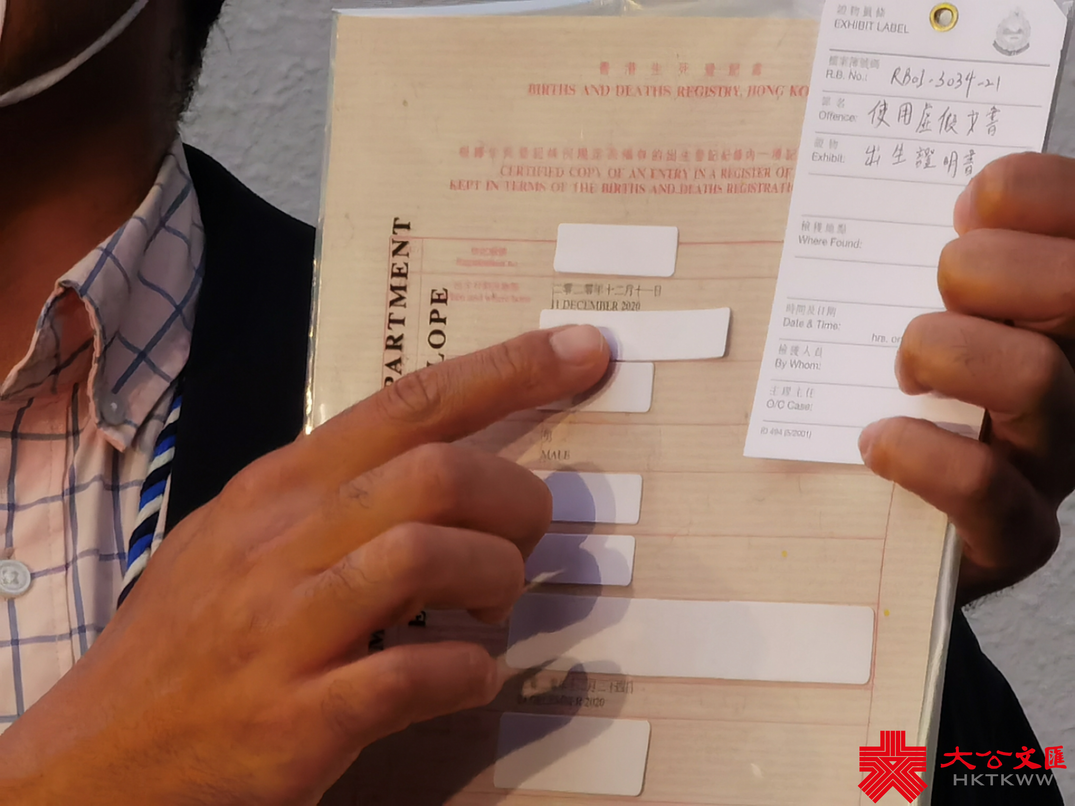 入境處隨後展開調查,並於一個住宅單位內拘捕被告,並檢獲一張懷疑經過篡改的出世紙和一張未經改動的出世紙。被告涉嫌使用同管有虛假文書被落案起訴,隨後承認兩項虛假文書罪,今日於沙田裁判法院被判入獄3個月。