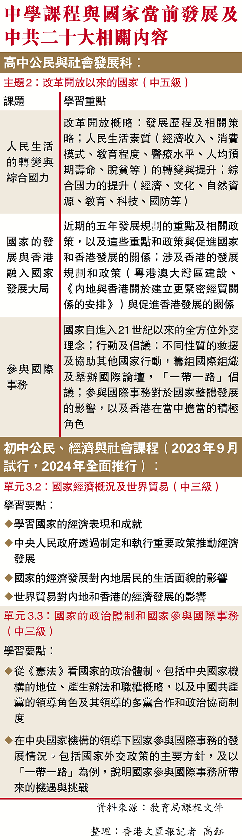「對高中學生來說,兩三年後他們有可能到內地升學、工作。大家近年都清楚看到,大灣區的確有很大的發展空間,不論是創業還是工作都充滿成果。」王益鈞強調,香港與國家的發展密不可分,而中共二十大將為國家未來發展提供重要指引,同學們應當有所認識的。