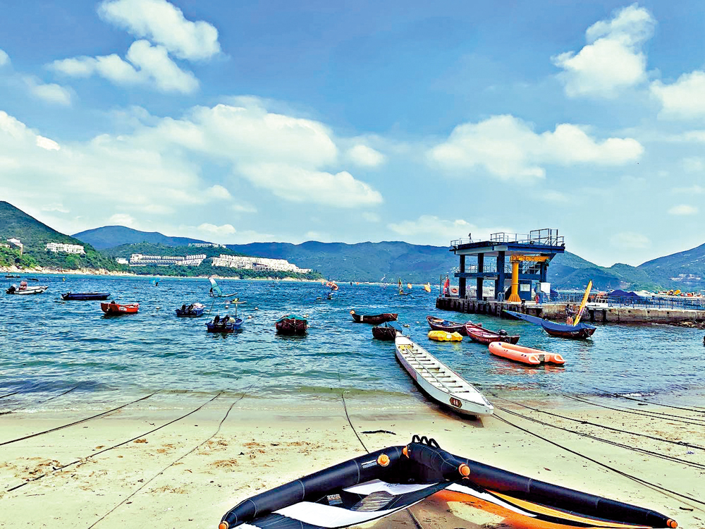如果想要流汗的話,赤柱依然是不錯的選擇。在赤柱正灘,可以看到不少水上運動的愛好者在岸邊整理裝備打打氣囊,或是在岸邊集結,準備開始獨木舟訓練;而海裏,五顏六色的小帆船正順風而行。只看見水上運動愛好者們穿着黑色緊身運動裝在板上做着高難度的動作。更遠處,還有龍舟訓練的隊伍正在海中競渡。