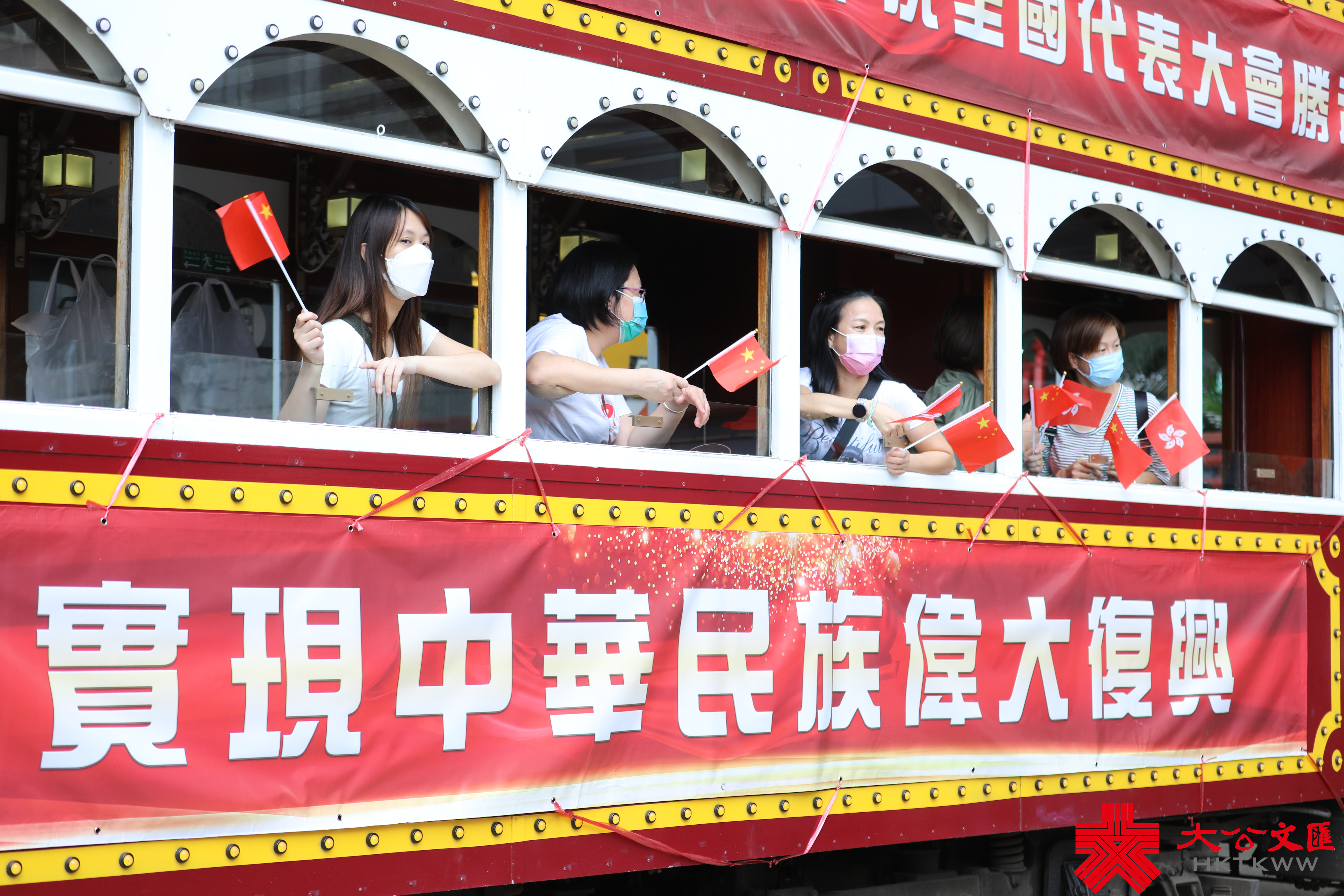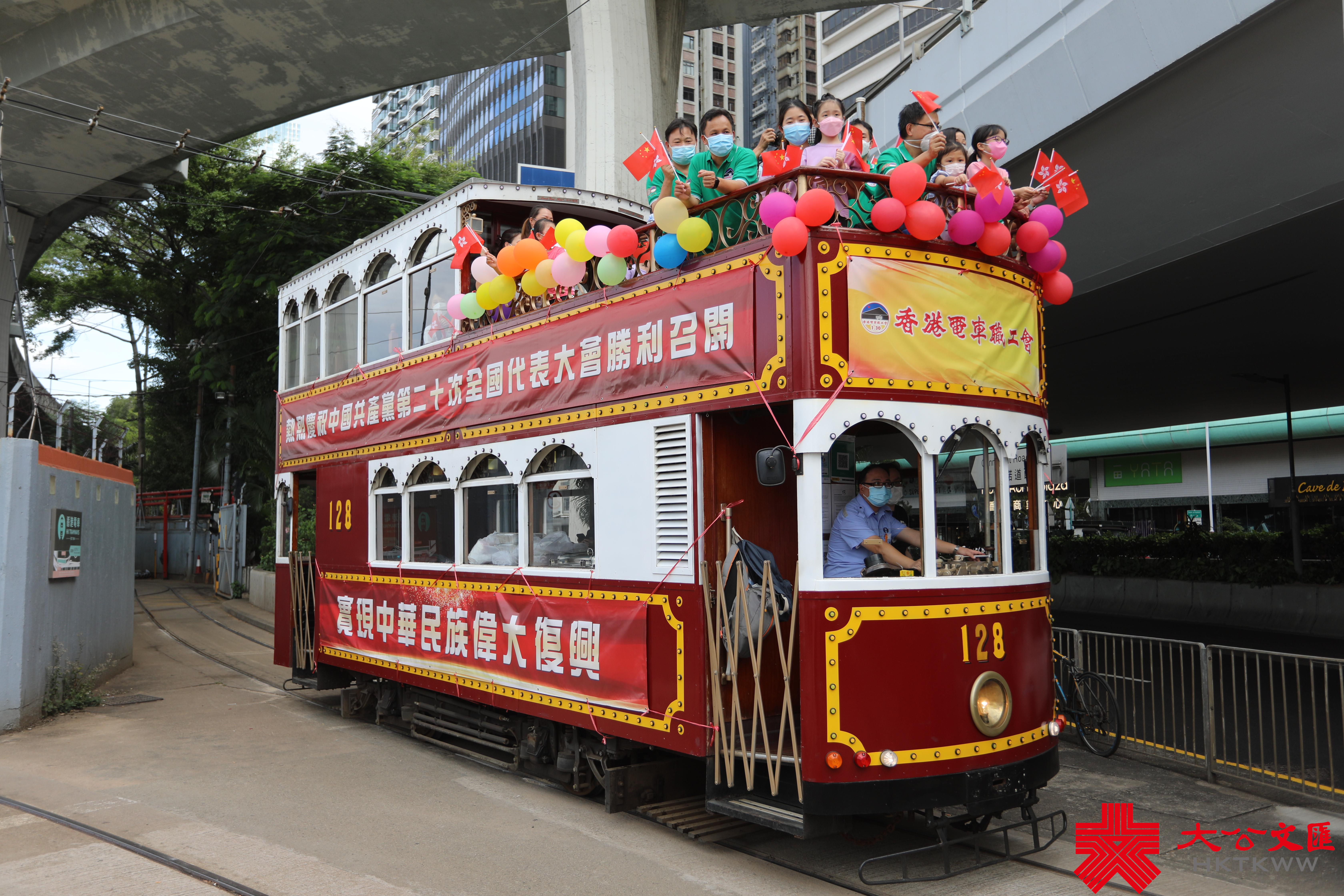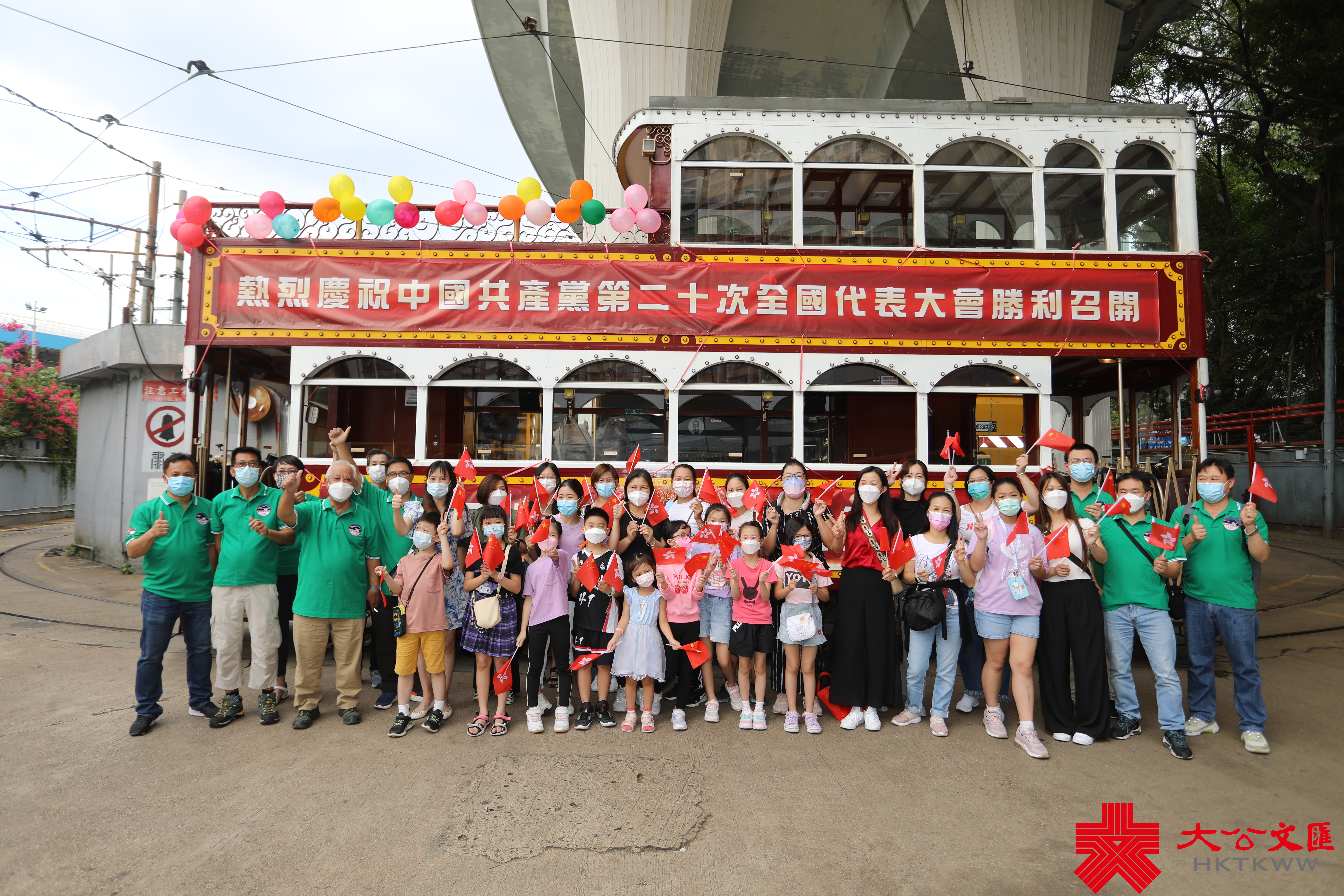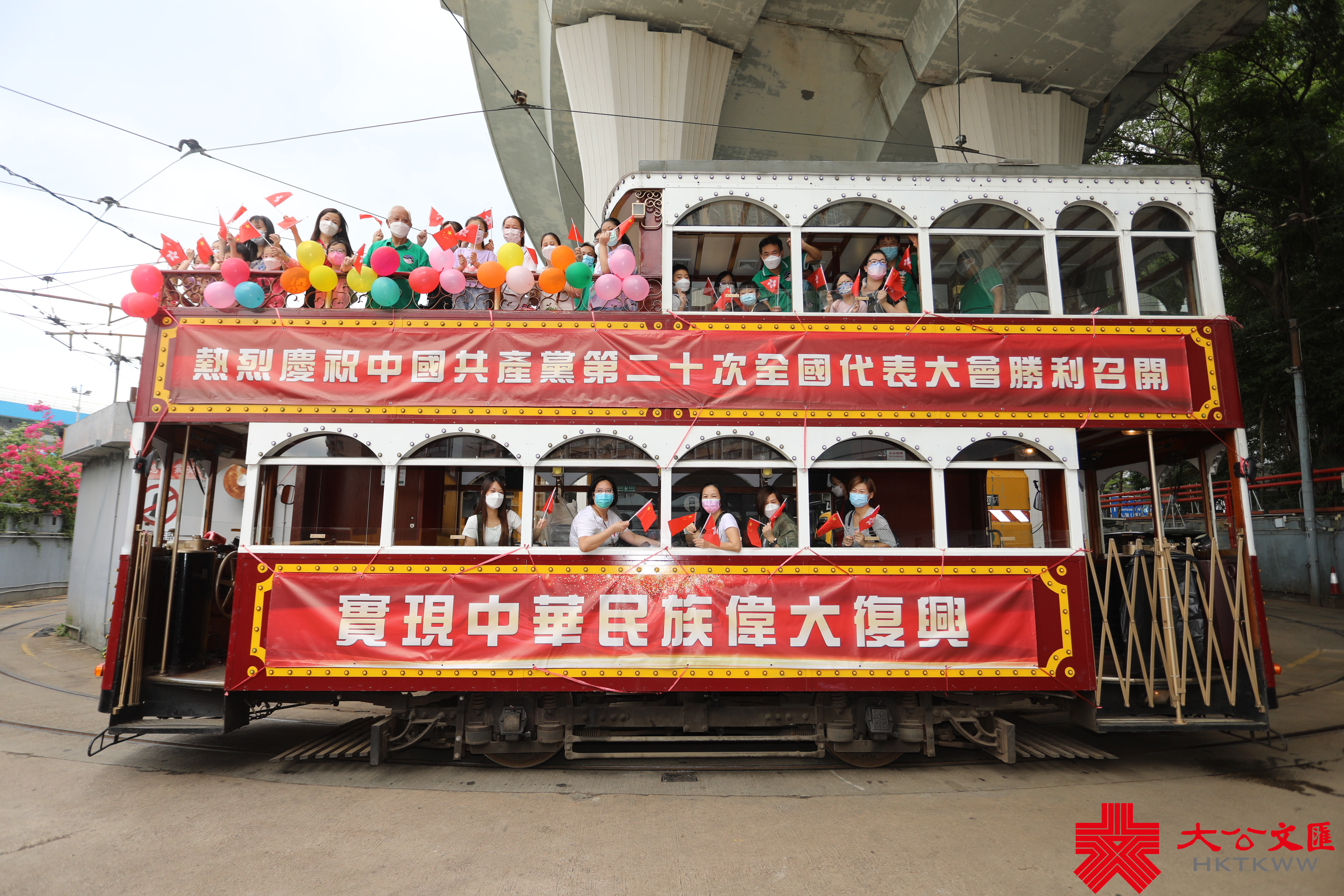 大公文匯全媒體報道,為慶祝中國共產黨第二十次全國代表大會在北京人民大會堂開幕,香港電車職工會今日(16日)組織逾20名市民和孩子乘坐電車在港島巡遊。