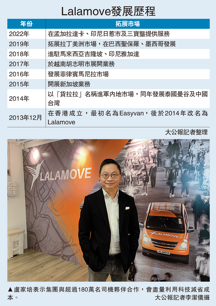 盧家培強調,現有投資者對Lalamove給予極大支持,而且集團的業務營運及現金流健康。他透露,在今年3月展開新一輪融資中,成功引入香港科學園作為投資者。