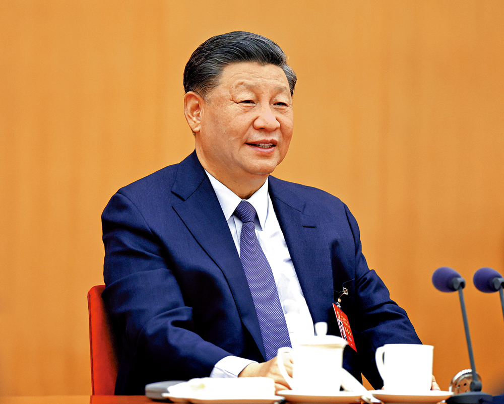習近平同代表們深入討論,現場氣氛熱烈。在認真聽取代表發言後,習近平表示很高興作為廣西代表團的代表參加討論,並向在座各位代表和廣西壯族自治區250多萬黨員、5700萬各族幹部群眾表示誠摯的問候。