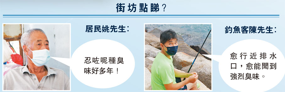 不少居民表示,被該處海水污染問題困擾多年,住近海邊的居民更要長年關閉窗戶防止臭氣入屋。居在附近屋苑十多年的姚先生說:「忍咗呢種臭味好多年!」