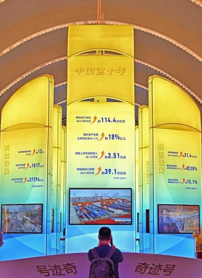 新時代10年,我國經濟實力實現歷史性躍升,國內生產總值從54萬億元增長到114萬億元,經濟總量佔世界經濟的比重達18.5%,提高7.2個百分點,穩居世界第二位;人均國內生產總值從39800元增加到81000元。