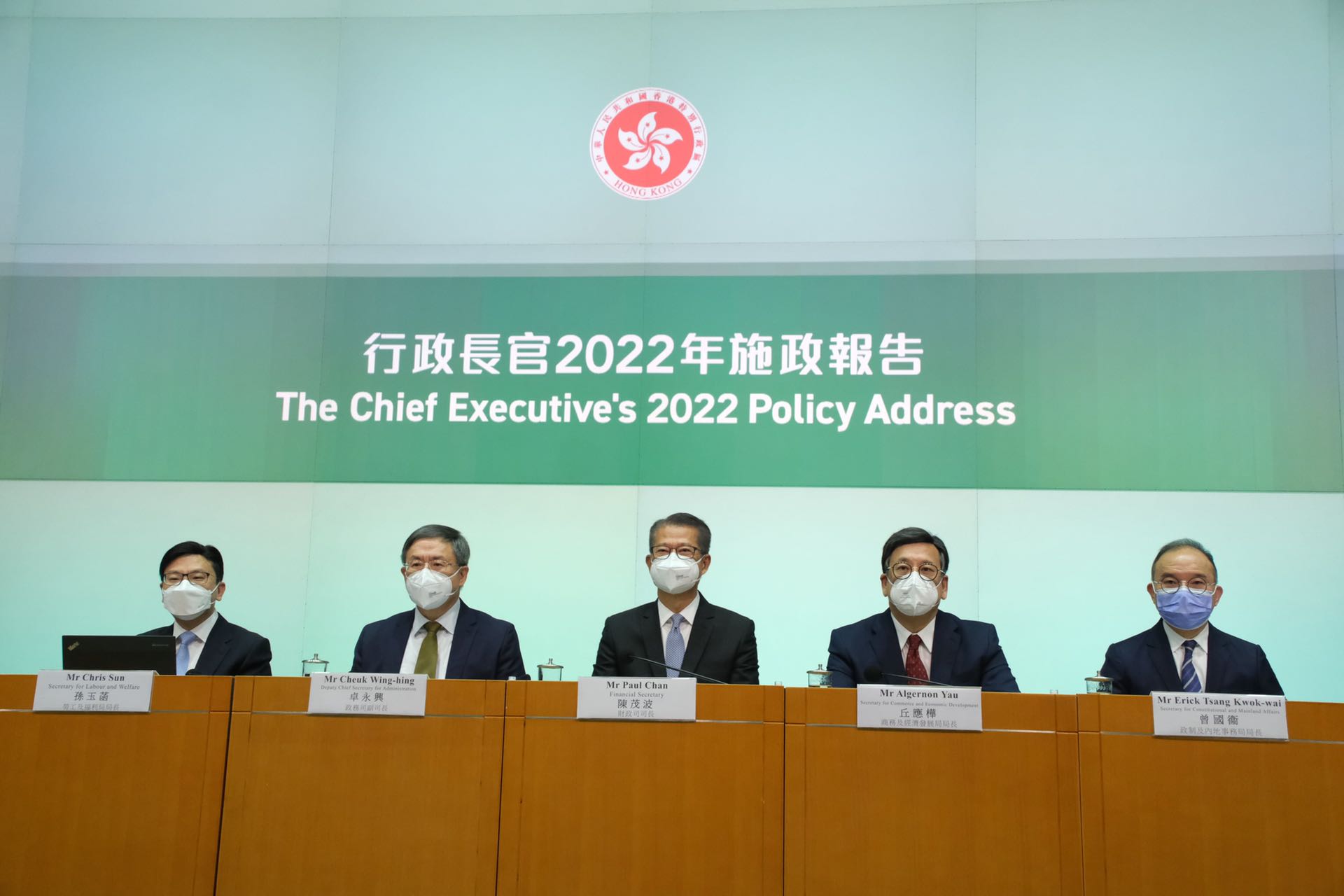 (大公文匯全媒體 記者 李九歌)行政長官李家超昨日(19日)發表任內首份施政報告。特區政府多名主要官員於今日(20日)舉行記者會,財政司司長陳茂波、政務司副司長卓永興、政制及內地事務局局長曾國衞、商務及經濟發展局局長丘應樺和勞工及福利局局長孫玉菡出席,闡述《行政長官2022年施政報告》中人才和企業發展相關政策範疇內的相關措施。