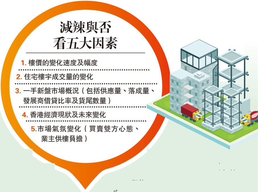 樓市持續下跌,不少地產界人士此前均期望施政報告中有樓市「減辣」措施,惟最終政府只放寬外來人才的買家印花稅(BSD),且目的是為了吸引人才,並非與樓市下行周期有關。財政司司長陳茂波昨日於記者會上指,政府考慮辣招應否撤銷時會留意五個因素,用了不少時間闡述理據,並判斷現時樓市與過去幾次大跌市不同,目前無須減辣。