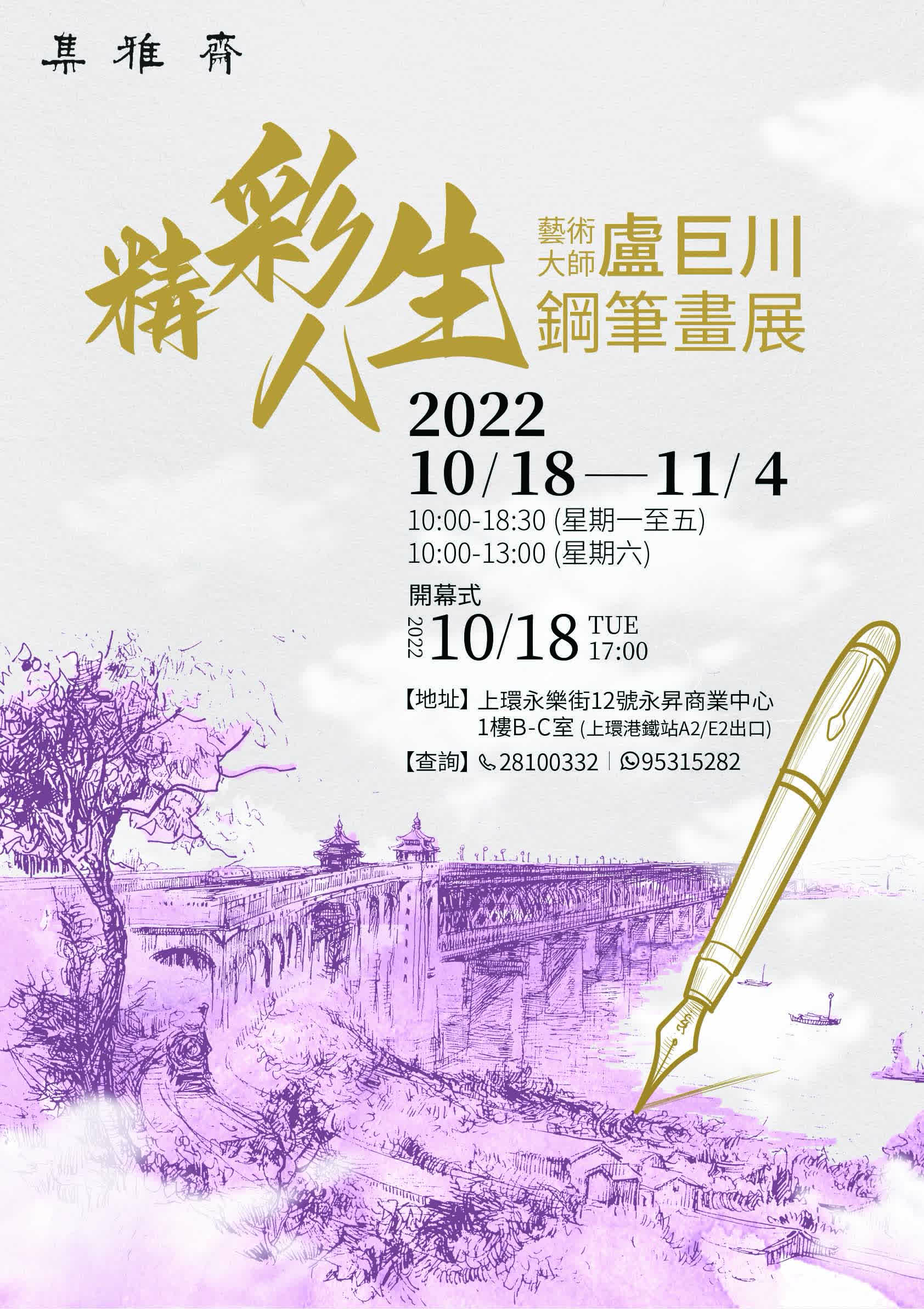 地點:集雅齋 (上環永樂 12 號永昇商業中心 1 樓 B,C 室)