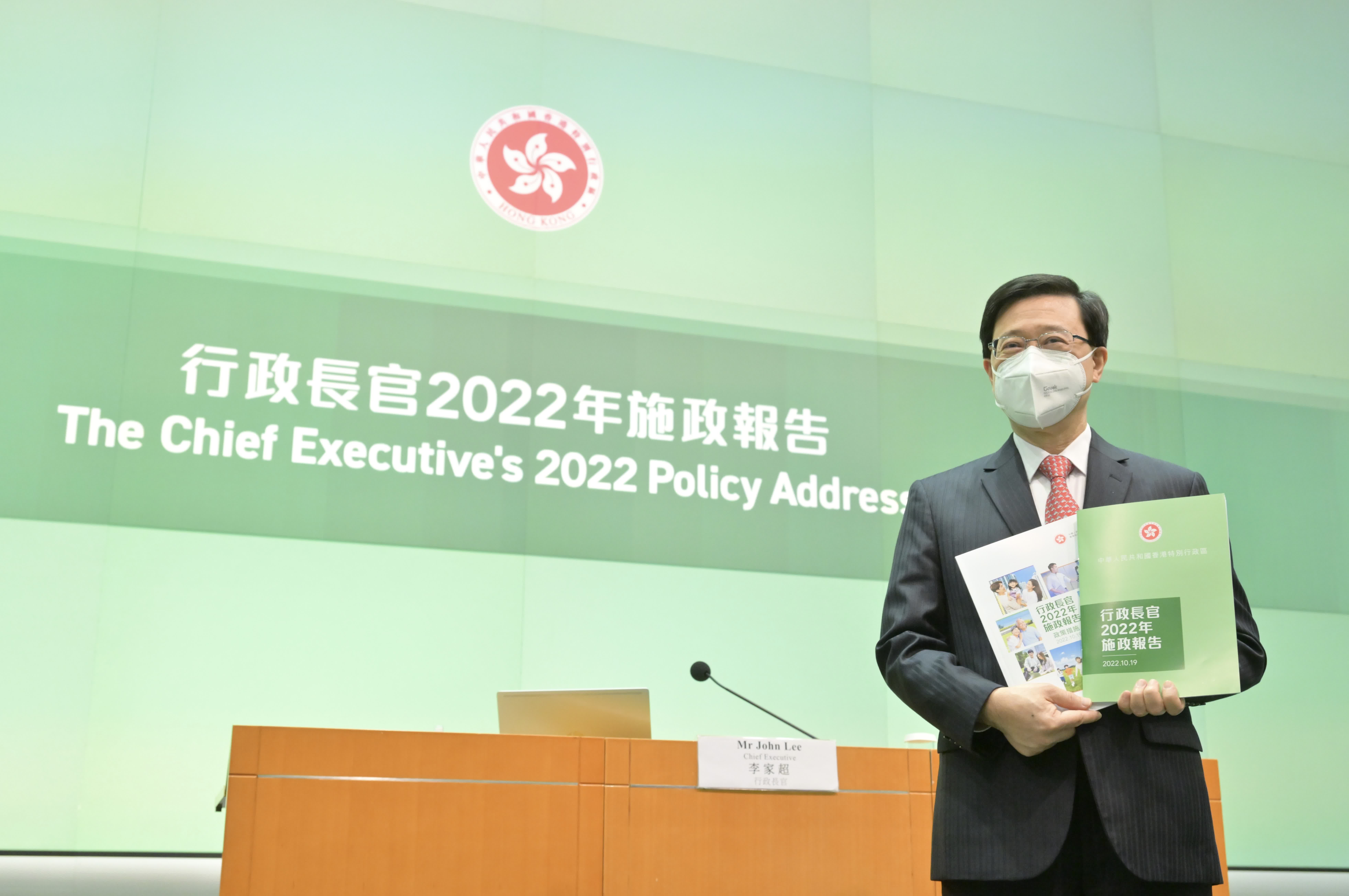 新一份施政報告發表之時,正值中共二十大會議,香港特區政府創新科技及工業局局長孫東昨日在記者會表示,中共二十大報告中提到要深入實施科教興國戰略、人才強國戰略,由此可見未來我國的民族復興和國家發展與科技密不可分,而香港建設成為國際創科中心的發展方向也與國家的發展大局密不可分。無論是在過去或未來,香港對國家站起來、富起來及強起來都發揮了非常重要的作用,故施政報告提出的四大創科發展方向中,第四個方向就是要積極融入國家發展大局。他特別強調,如何利用香港所長,服務國家所需,而未來引進海外企業的時候,也會看重這一點。