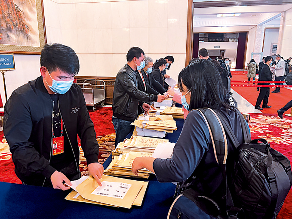 二十大閉幕會剛結束,位於人民大會堂二樓大廳一側的文件領取處就已排起長龍。據記者了解,大會現場為參會人員準備了閉幕會上剛剛通過多份決議文本,不僅有中文版,還有包括英文、俄文、日文等在內的12種外文翻譯版本。