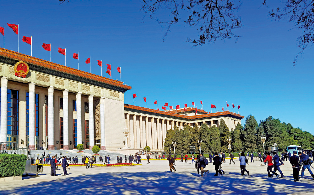 中共二十大閉幕會當天,秋高氣爽。不僅從記者所住酒店房間能遠眺京郊山脈,去往人民大會堂的途中也是一路藍天白雲相伴。車輛行駛至前門時,就已有不少外國記者迫不及待地舉起相機、手機進行拍攝,古香古色的正陽門箭樓、恢宏大氣的天安門城樓到紅旗招展的人民英雄紀念碑廣場、莊嚴雄偉的人民大會堂,盡數收錄鏡頭中。有趣的是,不少攝影記者為了搶佔最佳拍攝點位,不顧肩上扛着幾十斤重的設備,拚出了百米賽跑的速度,直到過了安檢、進了電梯,仍未喘勻氣息。