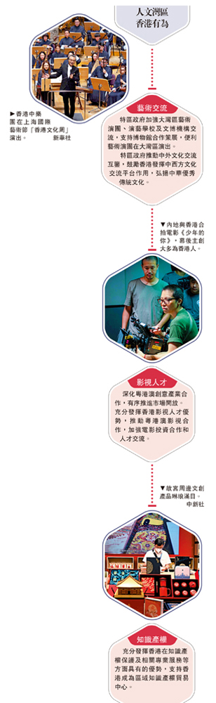 業界人士指出,香港影視及音樂既善於吸收中華文化傳統元素,也表現出一種兼容並包、和諧共在的文化精神。期待未來能更充分發揮香港人才優勢與內地電影市場優勢,合力奏響灣區人文樂章。