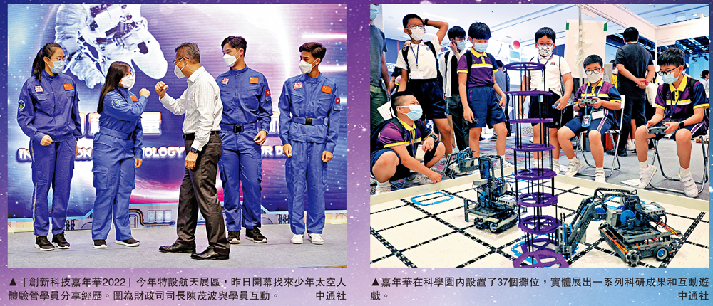 財政司司長陳茂波昨日表示,今年的「創新科技嘉年華」特設航天展區,讓市民了解香港對國家航天發展的貢獻。他希望透過嘉年華,引發社會上更熱烈的創科氛圍,在小朋友和青年人心中,播下日後投身創科事業的種子。