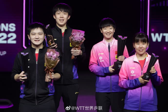 據新華社報道,2022年世界乒乓球職業大聯盟(WTT)冠軍賽澳門站賽事23日進行了決賽,中國隊王楚欽、孫穎莎分獲男女單打冠軍。