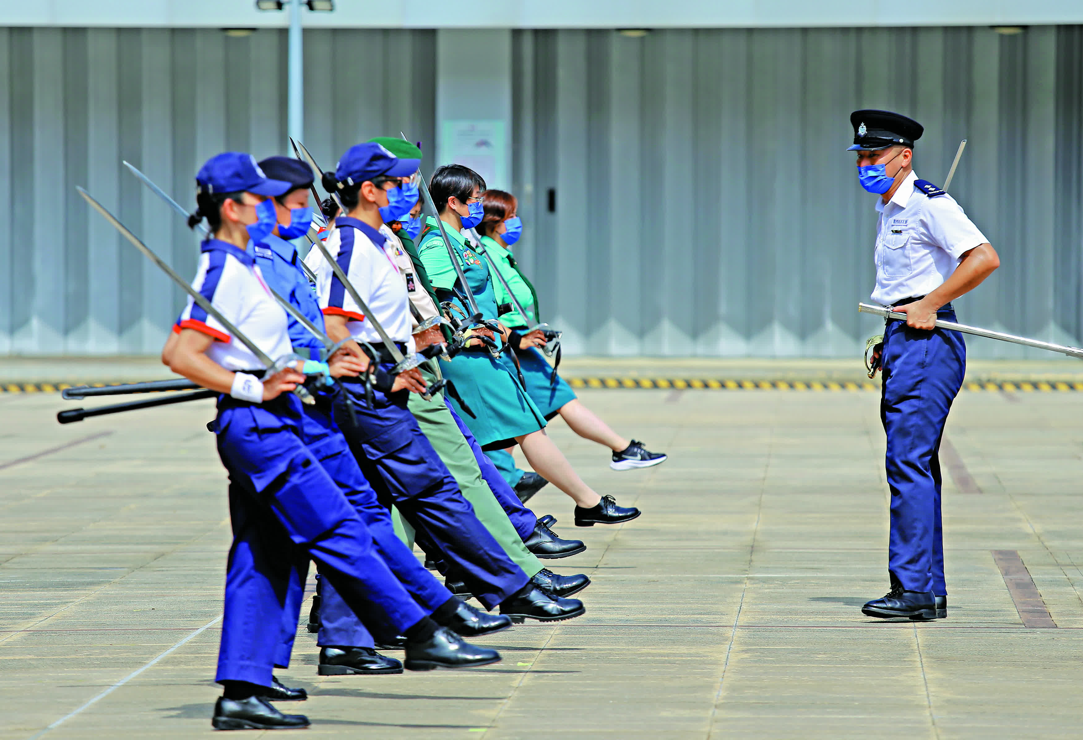 (大公報記者 葉浩源)本港紀律部隊和制服團體陸續轉用中式步操,為協助各團體打好基礎,香港警察學院過去一連三個周末,為來自8個青少年制服團體及相關機構的導師舉辦第一屆「中式隊列導師研習班」,共77名學員接受了中式步操訓練,包括基本動作、步操流程、升降旗禮及程序、教學技巧等,讓他們將相關知識和技巧帶返其所屬團體,教授予青少年,以提升他們的國民身份認同感。