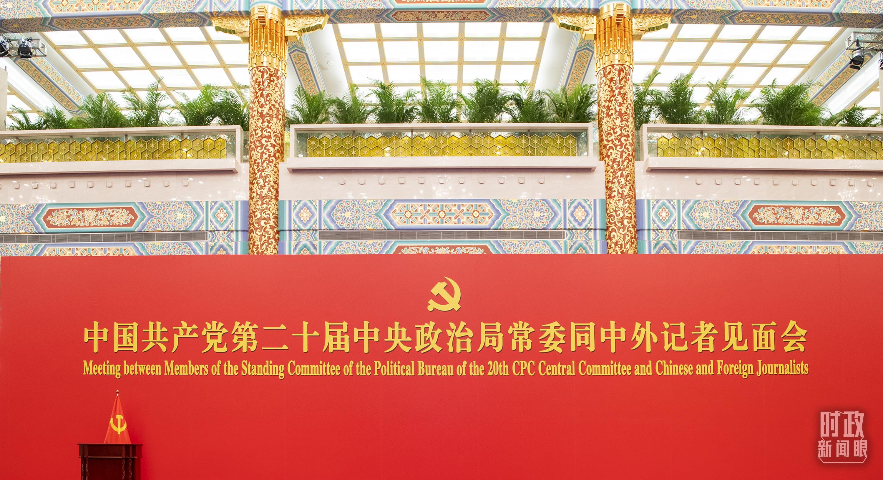 10月23日,剛剛在黨的二十屆一中全會上當選的新一屆中共中央政治局常委,在人民大會堂同採訪中共二十大的中外記者親切見面。