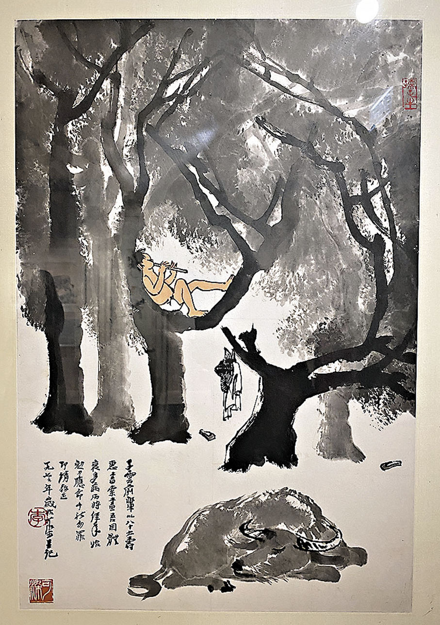李可染常在生活和寫生中尋求創作題材,其所畫的牛家喻戶曉、勤勞溫馴,反映出西方繪畫技法中的明暗處理及層次感,是次展出的作品《放牧閒笛》正是出色的例子。這作品以重墨渲染出畫面的層次,刻畫繁複交疊的樹蔭。在人物和動物方面,李可染先以簡潔的線條勾畫牧童,然後填以色彩,並置於畫的中央。樹蔭下是正在休息的牛,牛的身體肌理及神態刻畫得活靈活現。牛雖在日常耕作中佔有非常重要的位置,但傳統國畫家很少畫牛。因此,李可染把牛成為畫中主角,令人真正感受到樸實的田園生活。