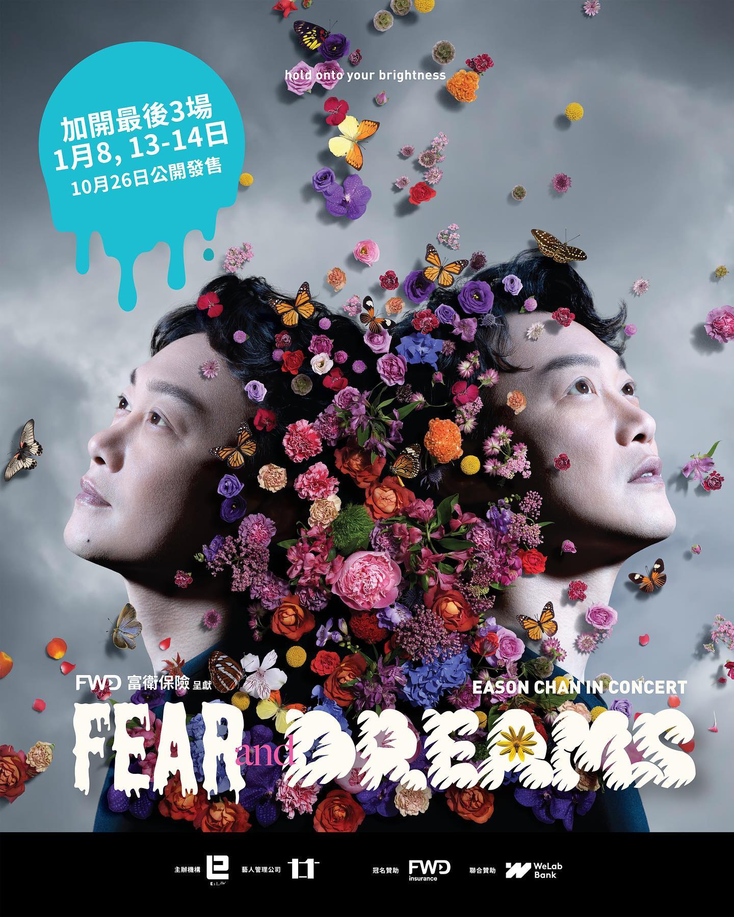 大公文匯全媒體報道,「歌神」陳奕迅(Eason)即將在年尾舉行22場紅館演唱會《Fear and dreams演唱會》,門票於10月初開售,雖然主辦方已按Eason要求將五成門票公開發售,但仍然有大量歌迷留言說買不到門票。有見及此,主辦單位為讓歌迷們有更多機會買到正價門票,決定終極加開1月8日、13日及14日最後3場,門票將於明日(26日)上午10時公開發售。此3場共有高達七成門票開放給歌迷搶購,更有超多前排位放出。