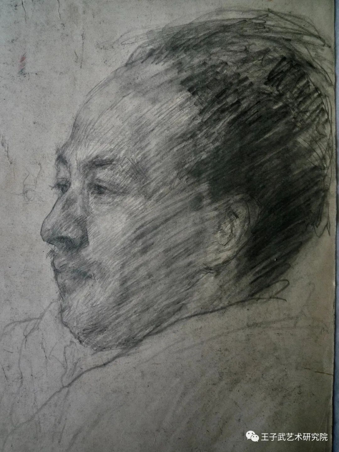 父親認為,繪畫技巧並無中外之分野,他雖然強調中國畫的筆墨功夫,但並不排斥西洋畫的表現手法。我上大學之前,在他指導下臨摹了大量人物畫,中國現代名家有齊白石、黃賓虹、蔣兆和、徐悲鴻,西洋畫名家則有俄羅斯列賓和挪威費舍爾等人。我記得還臨摹過當時剛剛出版的《初倫銅版畫選》。對這些名家名作,父親一一細緻解說,助我掌握繪畫表現手法,為我以後的繪畫創作奠定了堅實的基礎。考上大學前,我為父親畫了一幅他在看書的側面速寫頭像,他看後誇獎我說「感覺很好」。