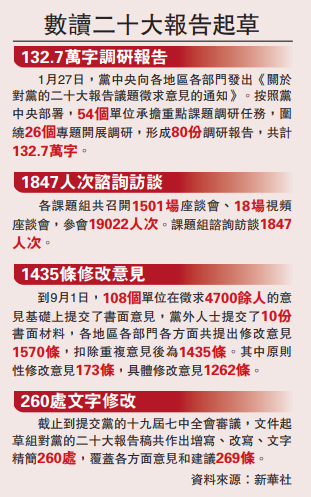 25日,新華社發表題為《推動中華民族偉大復興號巨輪乘風破浪、揚帆遠航——黨的二十大報告誕生記》的文章。誕生記指出:習近平總書記擔任黨的二十大文件起草組組長,全程領導黨的二十大報告起草工作,傾注了大量心血。「老祖宗不能丟,又要說新話;優良傳統要弘揚,又要創造新辦法。」誕生記說,習近平總書記對黨的二十大報告起草工作高度重視,全程領導了報告起草工作。