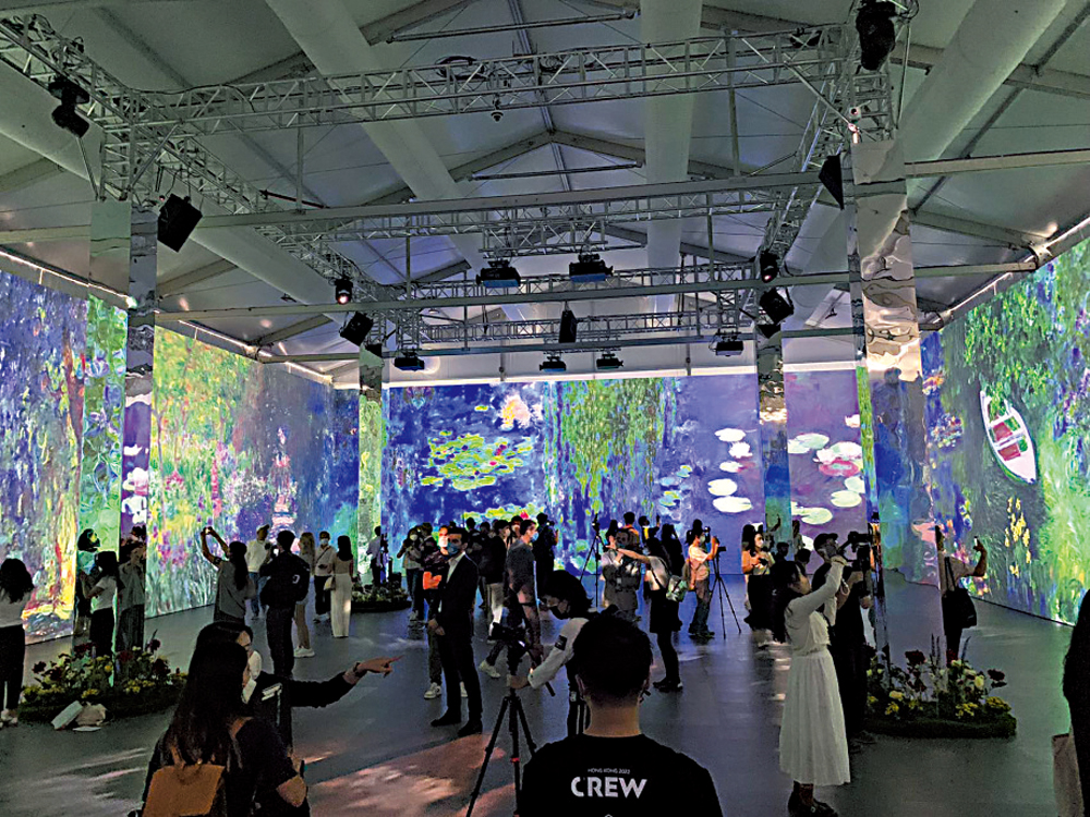 (大公報記者顏琨報道)「尋找足印·莫內」沉浸體驗展今日(10月27日)起至2023年1月15日在西九文化區文化廣場舉行。體驗展利用現代數碼科技為工具,讓約200幅印象派大師克勞德·莫內(又稱克勞德·莫奈)的經典油畫跳出畫框,以全新角度詮釋經典作品,令觀眾在展覽中了解莫內的傳奇人生。