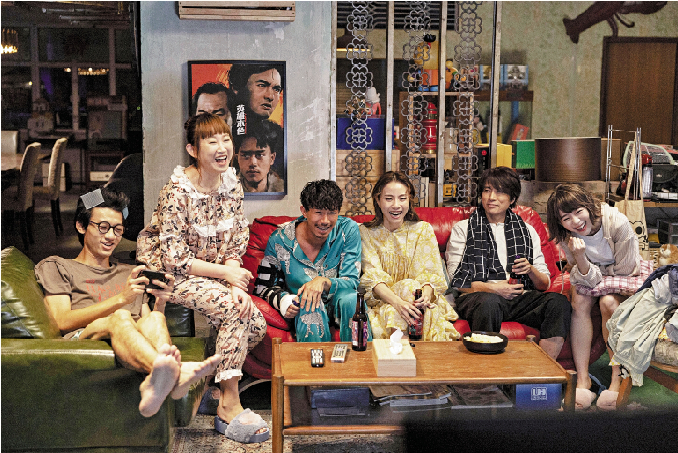 視聽語言方面,每個鏡頭和畫面都有導演和主創要暗示的含義。影片雖然絕大多數鏡頭畫面都在陳家,但是導演多次反覆使用了外景的廣角鏡頭,讓陳家所在的老樓和香港眾多霓虹璀璨的大廈置於一處,形成鮮明對比。如同片中六個人一樣,代表了新舊:傳統刻板、充滿回憶的過去以及新興事物、觀念層出的現在之間的對立。這種衝突的強化還表現在鏡頭的切換,例如二佬和大佬為了Monica爭風吃醋的時候,鏡頭就在他們之間不斷切換,沒有把他們置於同一鏡頭,而是表達出強烈的割裂感與不適感。就連光線的明暗、畫面的構圖、景深,都在表達這種新舊之間的對立和融合、掙扎,縱然是在家裏,做直播的喵喵和電競選手三佬,時不時都會路過的客廳走廊上,掛着的是老電影《英雄本色》的海報。最值得關注的是,導演多次以演員調度細節的表演,暗示大佬是色盲。