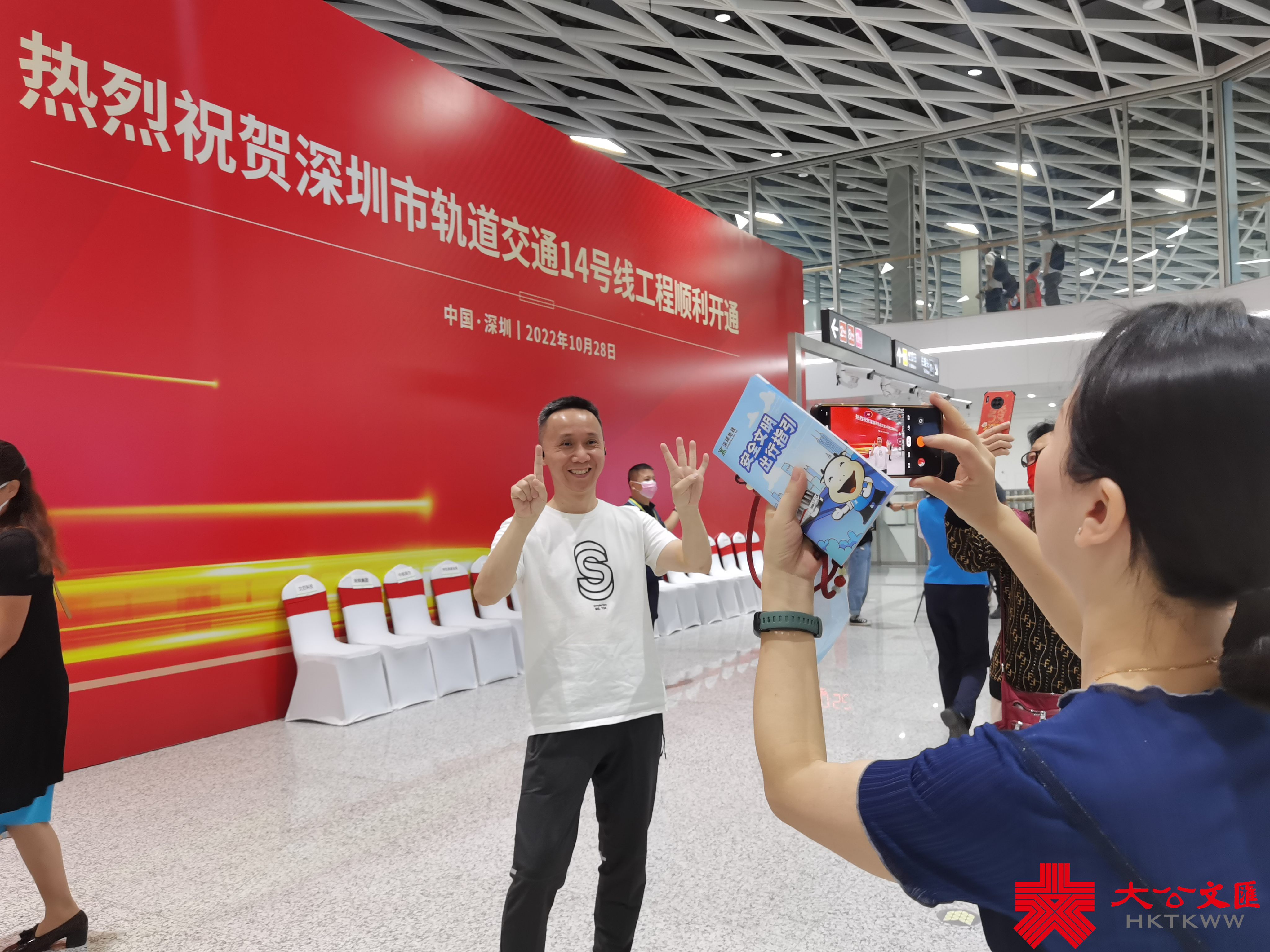 記者在現場看到,等候多時的市民蜂蛹而入,爭相拍照留影,顯示出14號線的超高人氣,乘車市民更是聚集在列車車頭體驗無人駕駛。劉先生家住羅湖,得知14號線開通的消息,一大早就排隊進展,他想去坪山區逛一逛。「以前開車去太遠不方便,現在有地鐵了,隨時可以出發!而且時速120,太快了。」