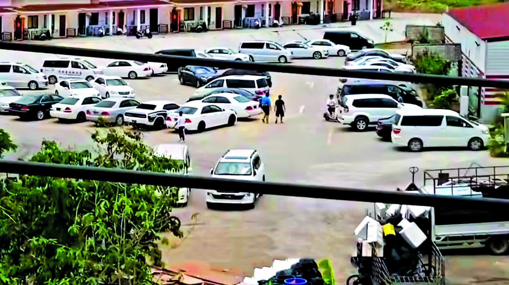 根據遭禁錮在詐騙園區的B先生向母親報平安時所傳的片段可見,他身處的園區內的所謂治安局(園區自設保安隊伍)並非在建築物內,而是在空地上搭建的臨時鐵皮區,內裏放置了幾張臨時鐵床供人躺卧。B先生當時因被誣衊盜取集團現金,而被相關負責人恐嚇拍片交還款項。