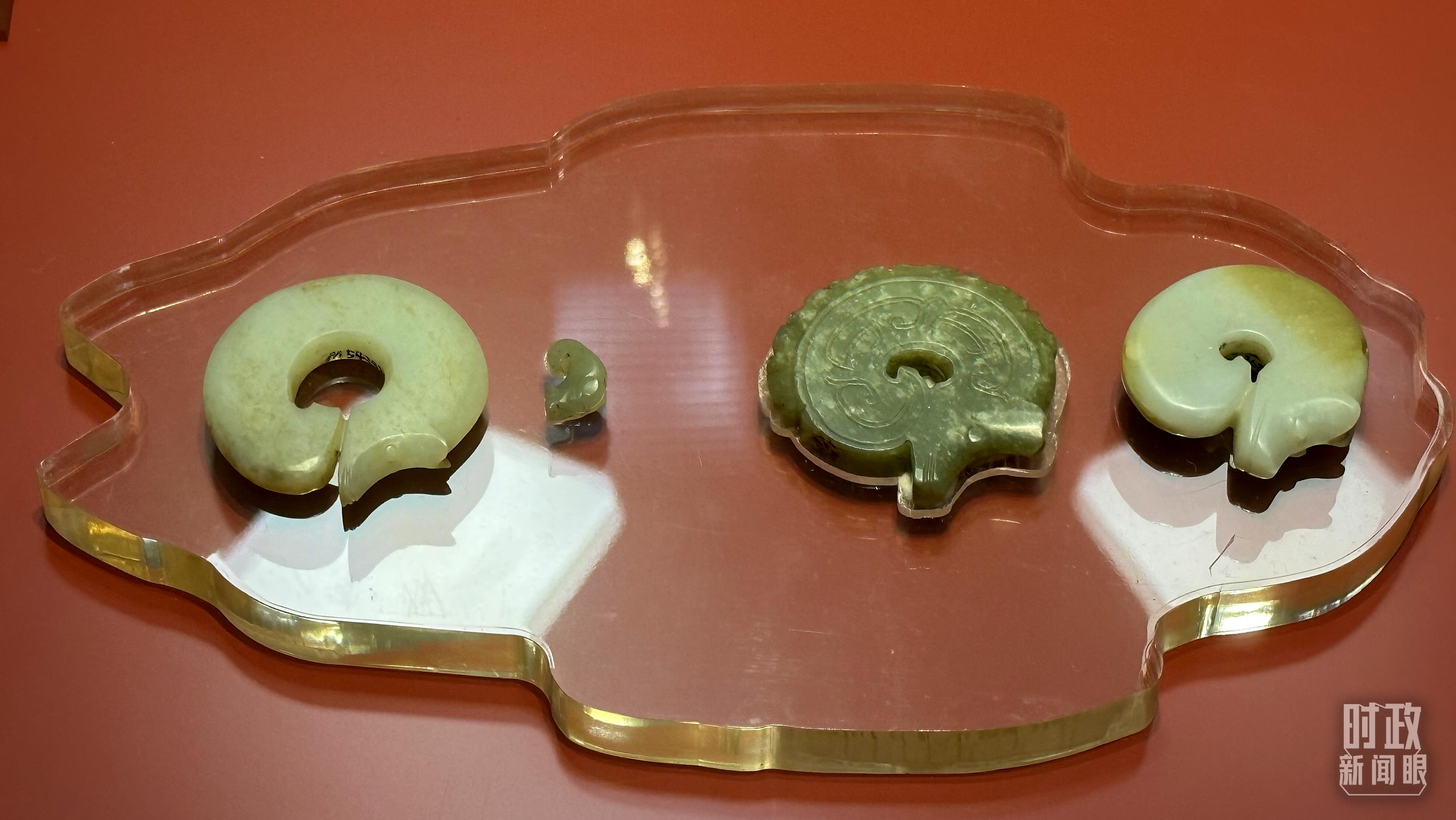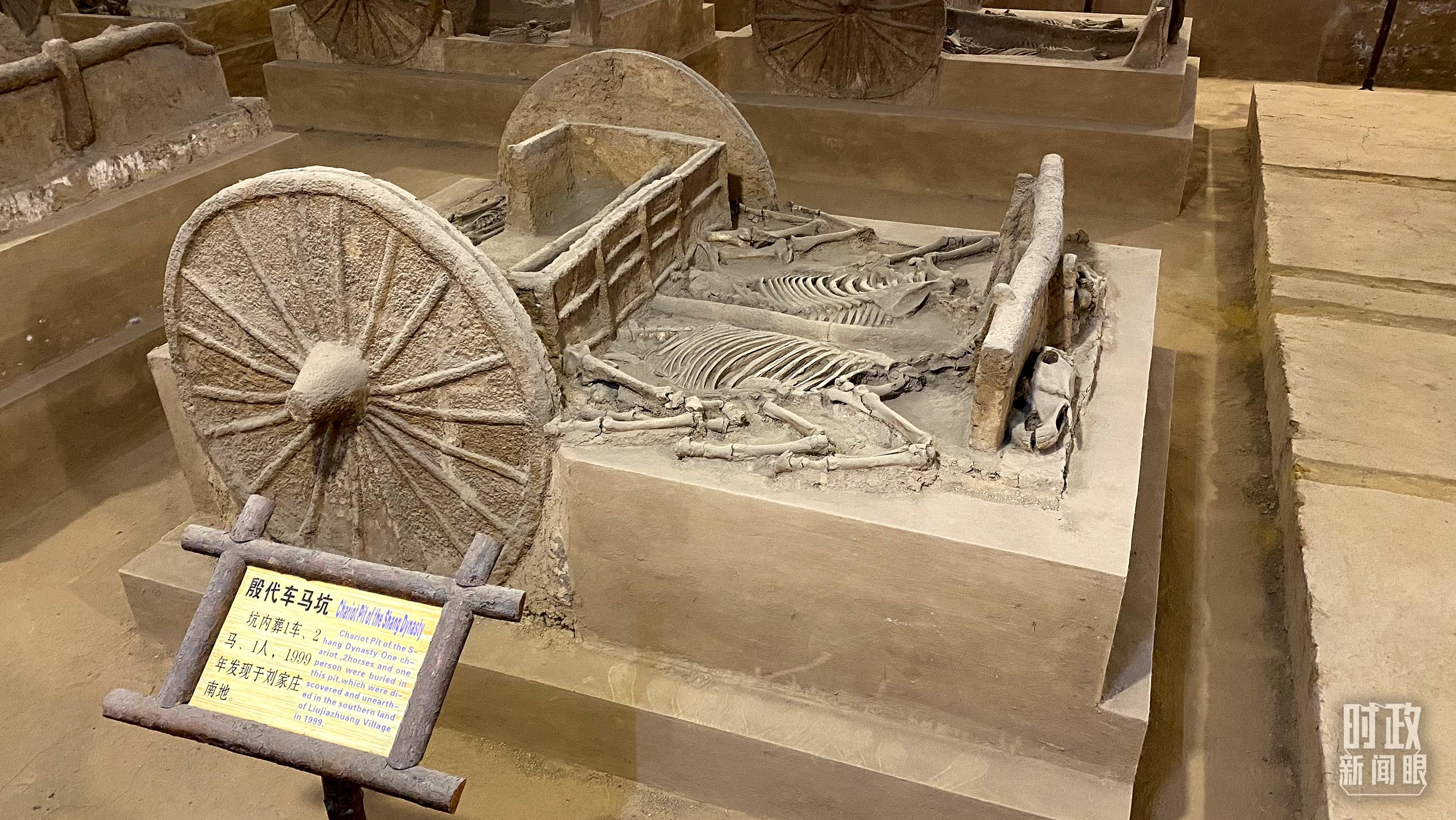 在殷墟博物館,總書記仔細觀摩青銅器、玉器、甲骨文等出土文物,並來到車馬坑展廳,察看商代畜力車實物標本和道路遺迹。