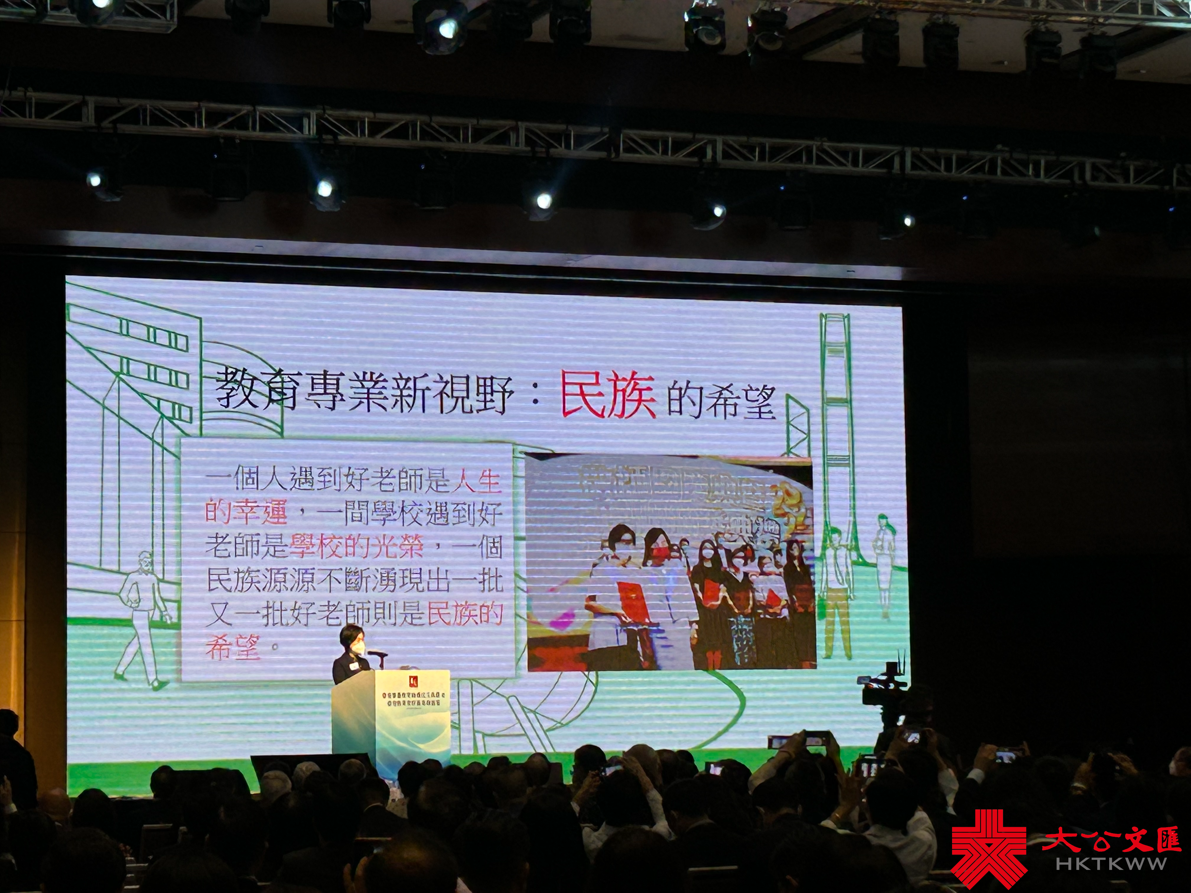 李子建的講題是「開啟香港學校課程新篇章」,他表示,開啟香港學校課程新篇章要做到開拓新元素新方向,「保」香港學校課程特點,增強愛國主義教育,減輕學校行政負擔四個方面。