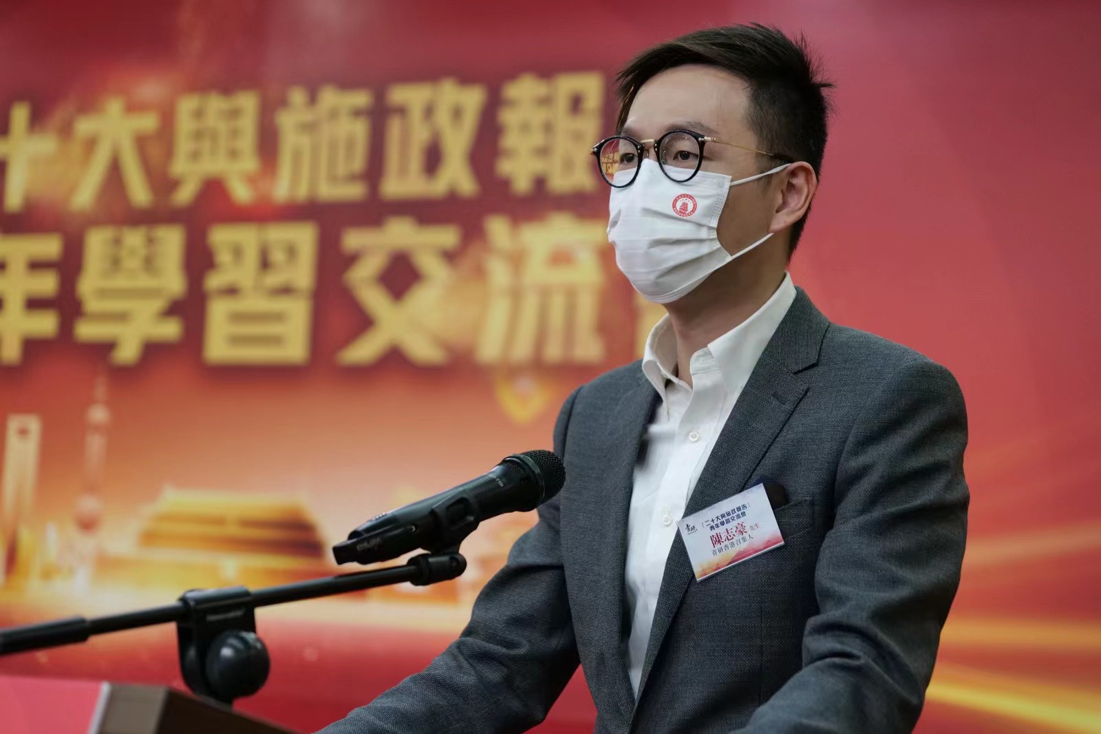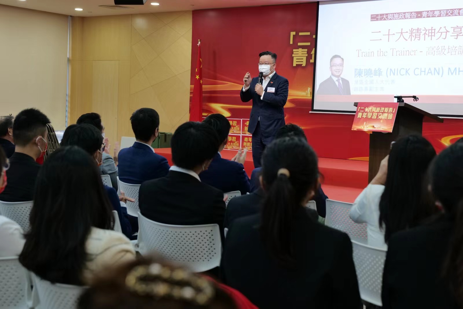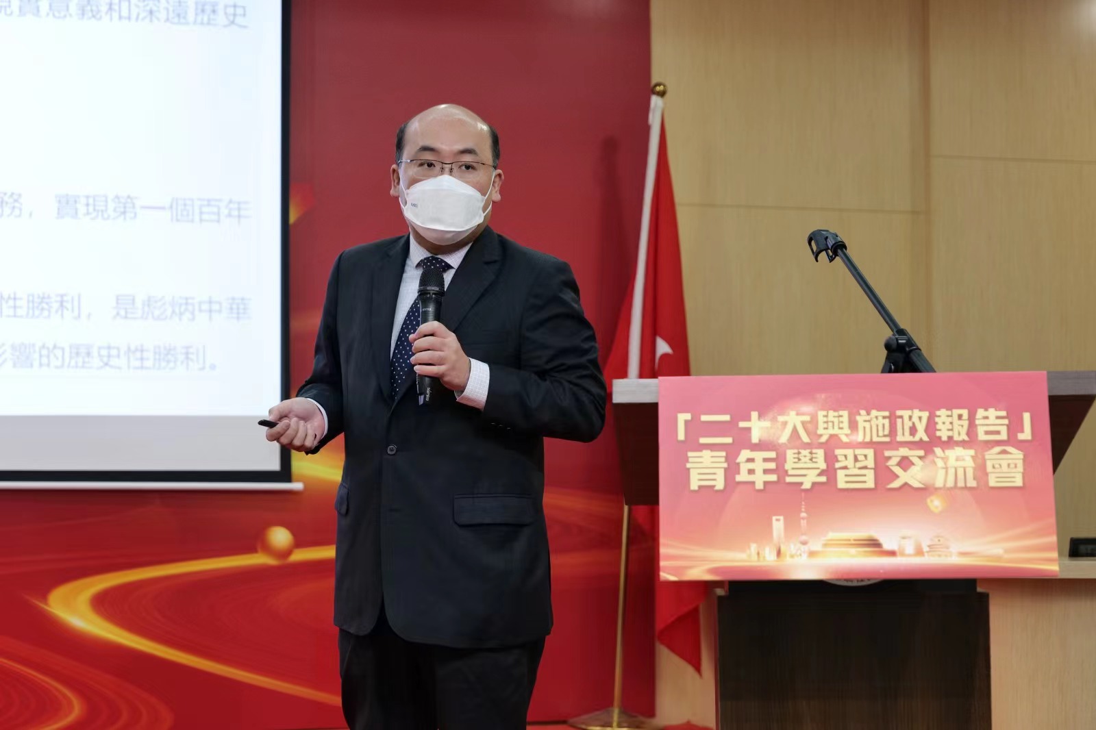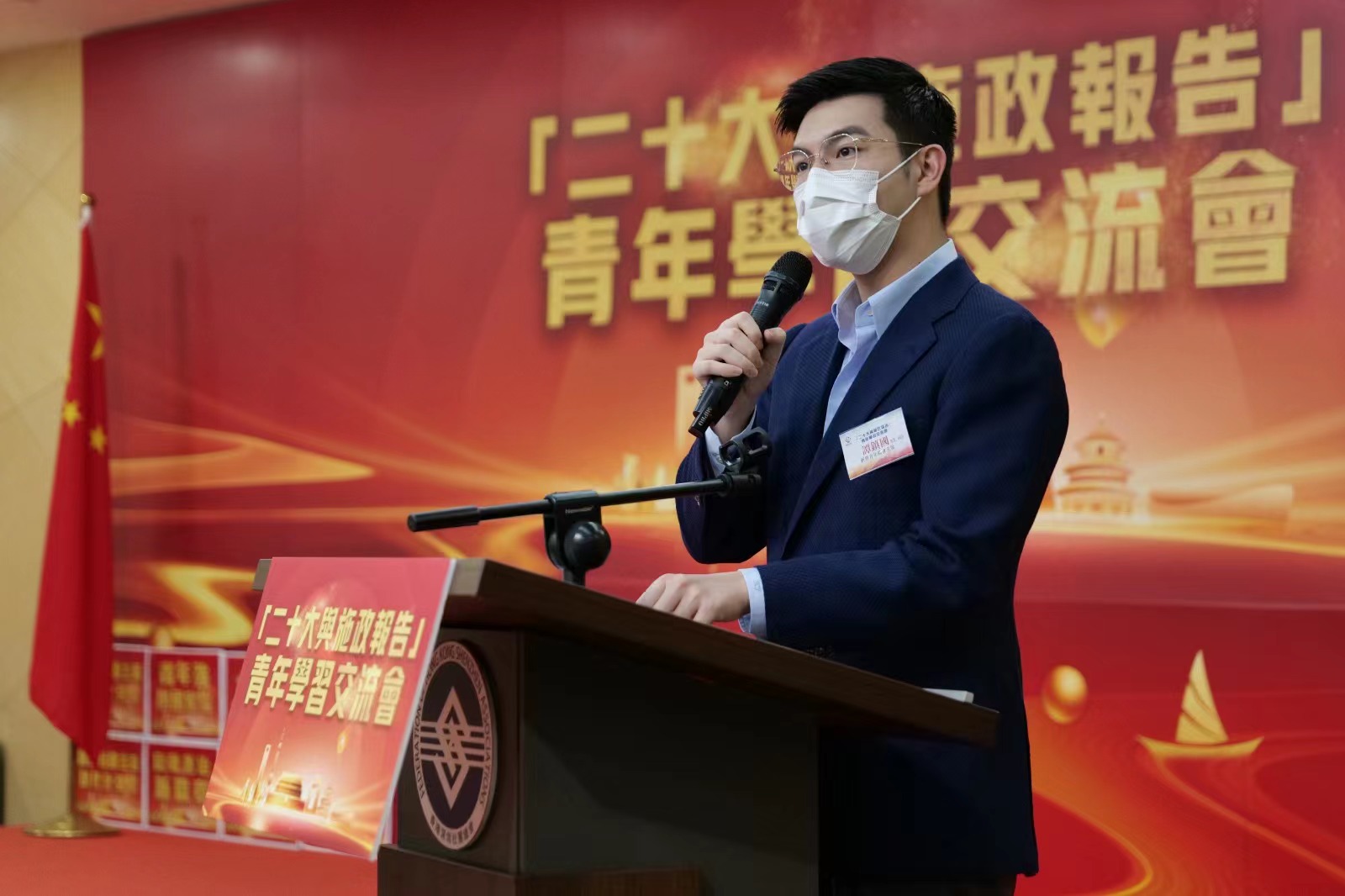 青研香港召集人陳志豪致辭時表示,二十大是黨和國家的重要政治會議,二十大報告是黨和國家的重要政治文件,具體講述了過去一段時期的發展成果,強調了最新、最重要的執政理念,宣告了未來的中心工作,是認識黨和國家發展的重要論述資料,任何關注黨和國家發展的市民必須認真關注和學習。