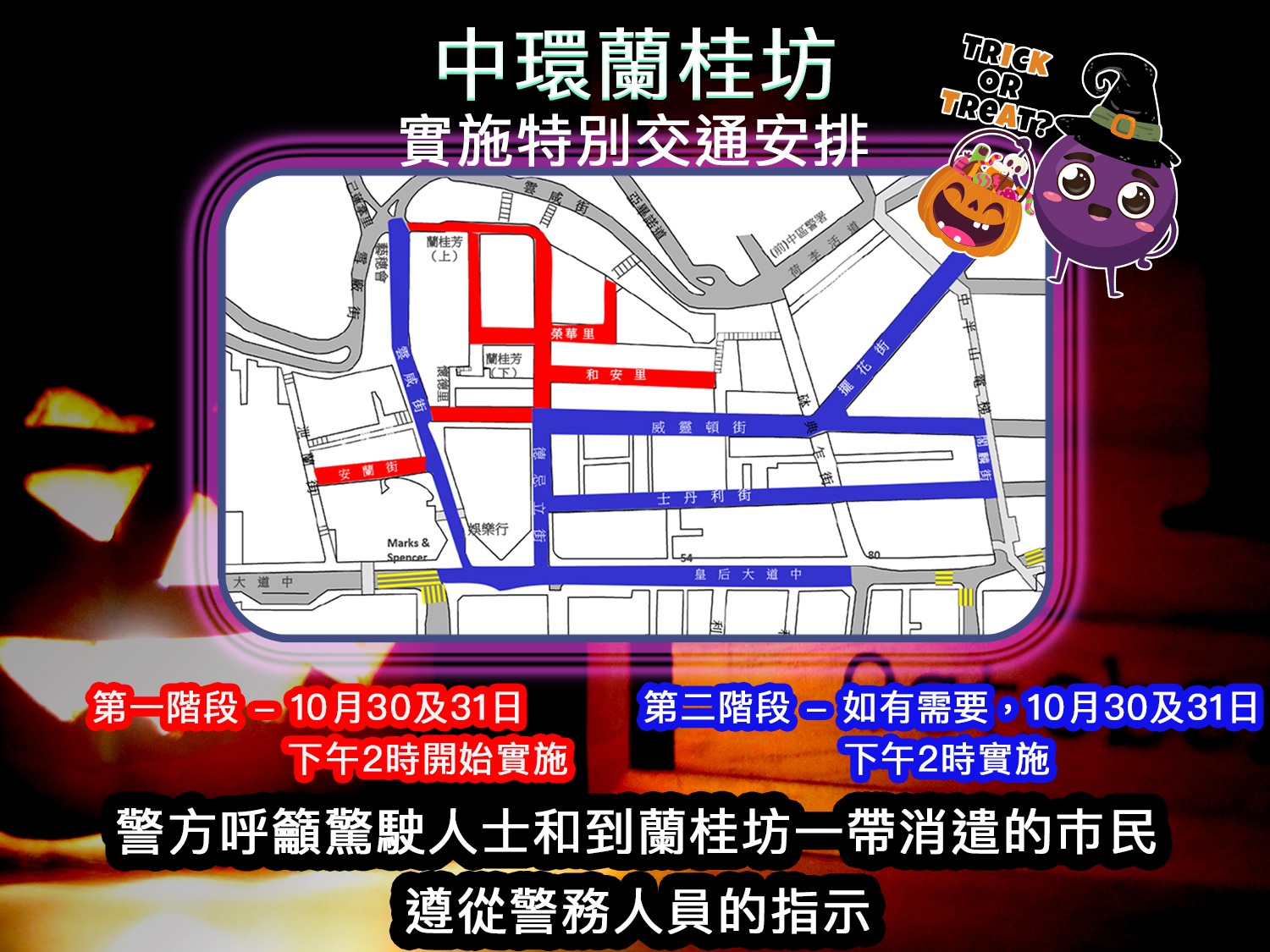 今晚是萬聖節前夜,想必人數會遠超昨日,希望警方能繼續保持警戒,而參加活動的小夥伴也要多注意保持距離,遇到危險及時保護自己!