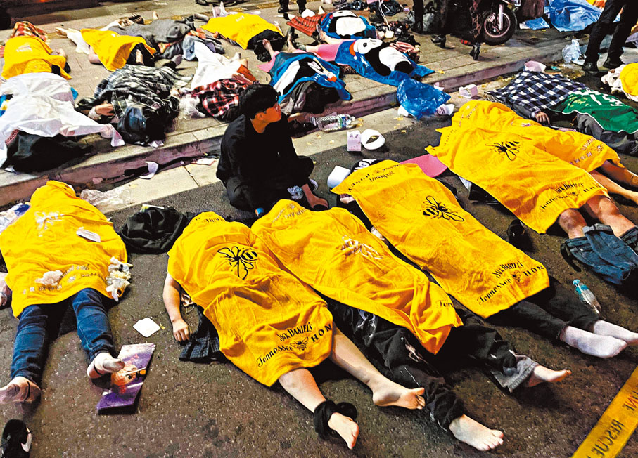 梨泰院踩踏事故多名目擊者昨日接受中新社記者採訪,回憶驚魂一夜。中國留學生劉某告訴記者:「我一出酒吧,面對的是一排屍體。」