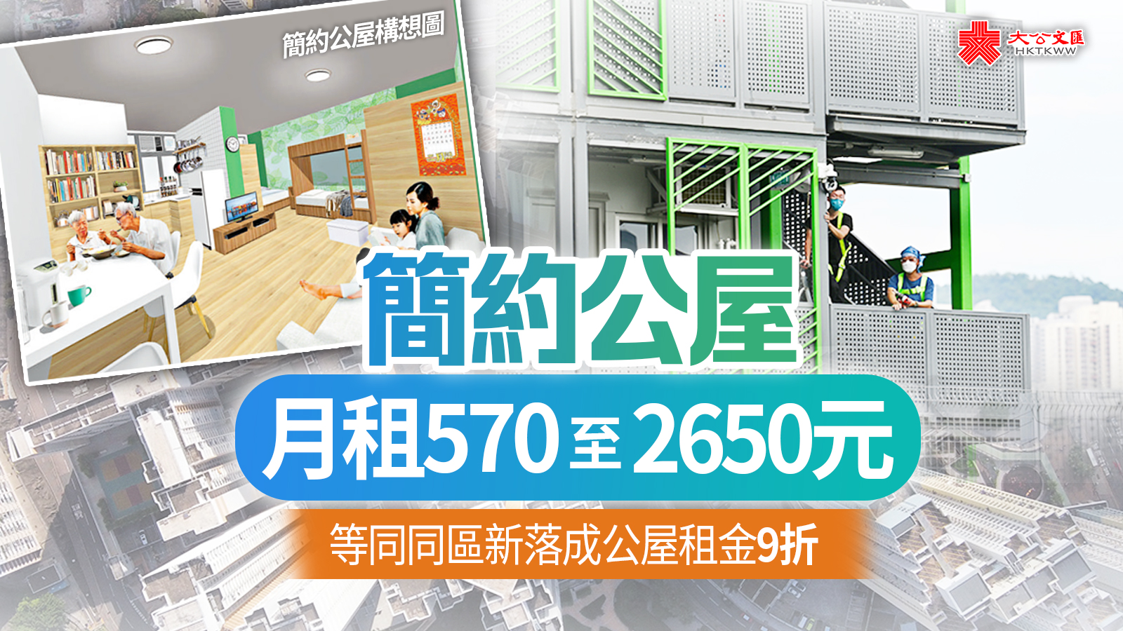 (大公報記者 曾敏捷)簡約公屋租金曝光!房屋局提交立法會的文件顯示,簡約公屋租金暫訂為同區新落成公屋租金九折,月租估計為570元至2650元,將招標邀請有經驗的機構營運及管理,會為租戶和社區提供適切的社會服務。