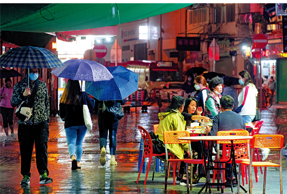 (大公報記者 伍軒沛)新冠防疫措施下,不少市民已忘記堂食宵夜的滋味。隨着政府今日起進一步放寬社交距離措施,取消食肆堂食時間限制,宵夜時段「復活」,大公報記者今日凌晨現場直擊,有食肆馬上重投宵夜市場,有市民無懼八號風球,昨晚第一時間呼朋喚友到食肆吃宵夜,期望社會邁向復常,隨時可以開心食宵夜。