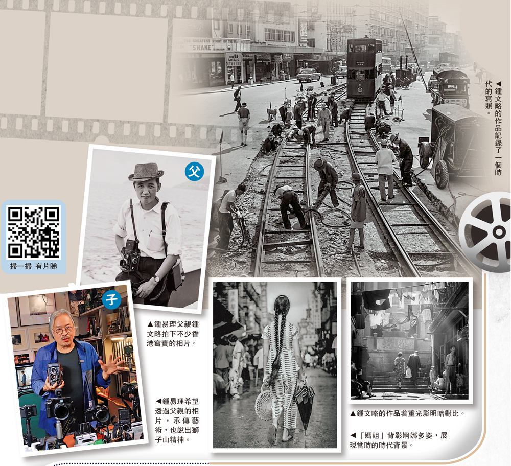 (大公報記者余風、蘇荣 <文> 盧剛昌、受訪者 <圖> )「一出世,我身邊已經全是菲林!」鍾易理笑道,一生與菲林結下不解之緣、「含着菲林長大」,因為他是街拍始祖、已故攝影大師鍾文略的長子。 圖> 文>