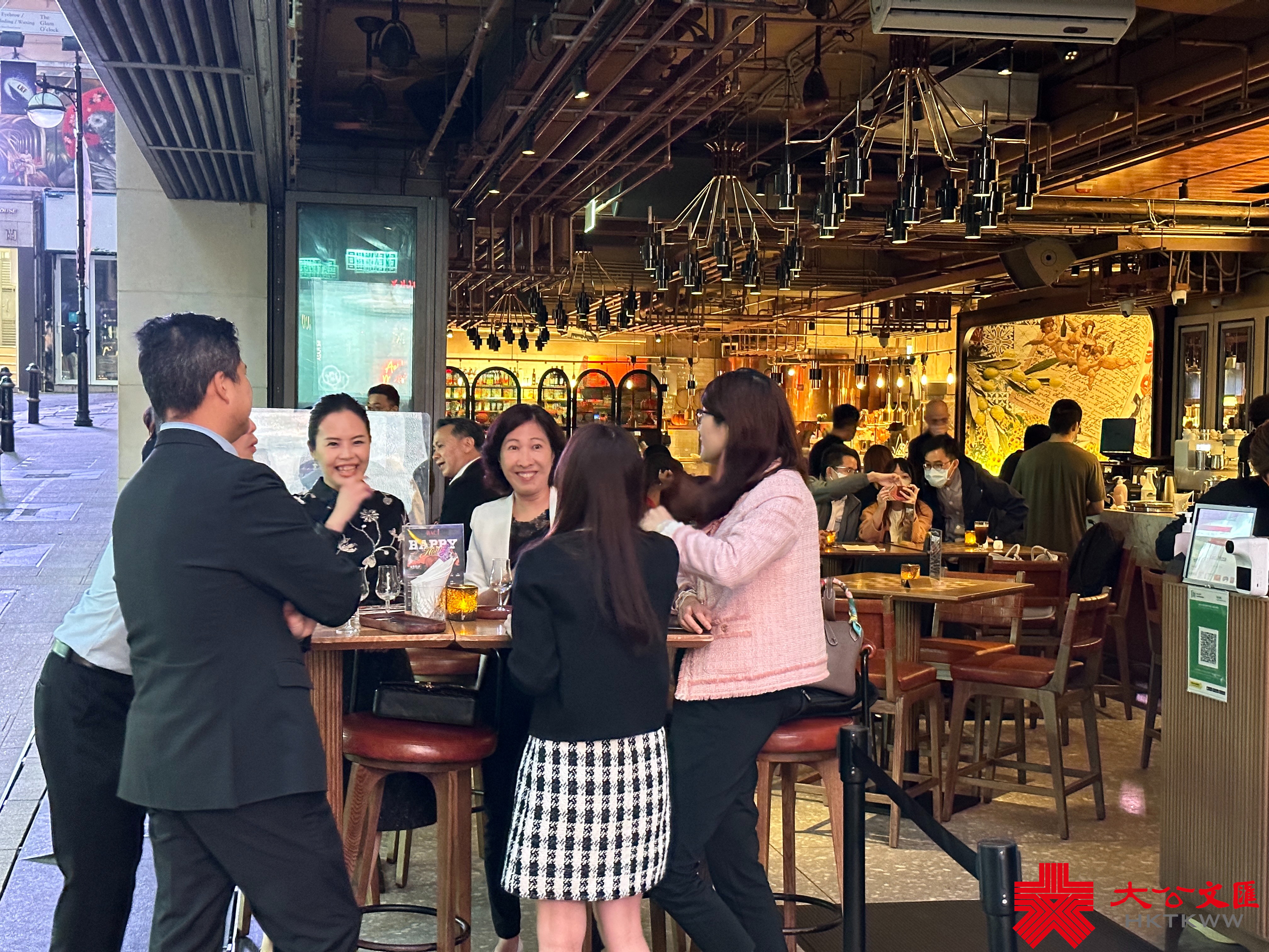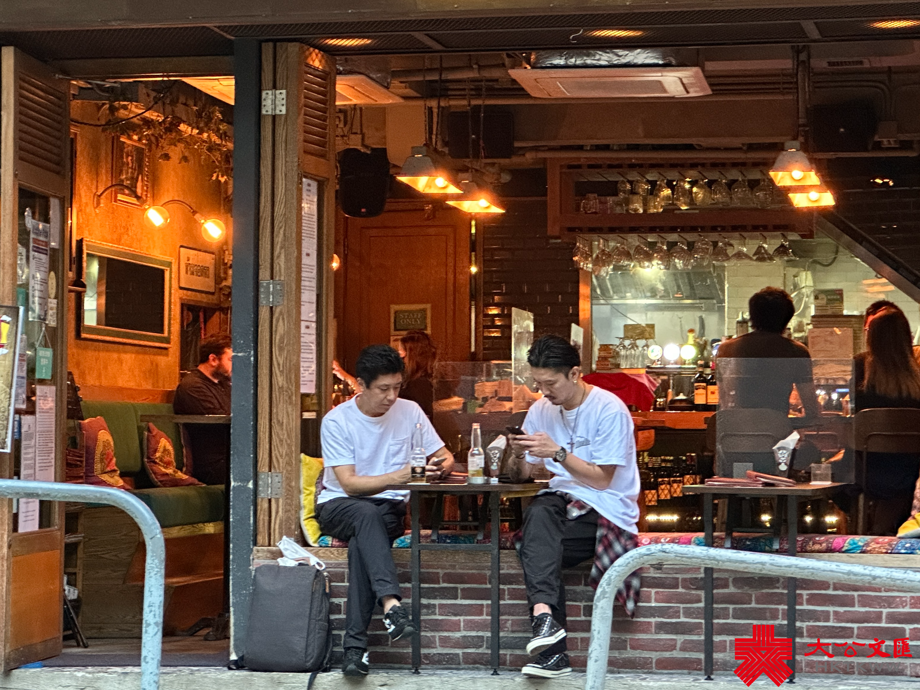 大公文匯全媒體報道,本港新冠疫情目前維持平穩,特區政府推動進一步復常,今日(3日)起再放寬多項防疫措施,包括政府轄下的燒烤場地重開,解除餐飲及酒吧等表列處所的營業時間限制,宴會或婚宴等活動台上拍照時可不用戴口罩。大公文匯全媒體記者傍晚在中環蘭桂坊一帶見到,酒吧已有不少酒客入座,一眾好友聚在一齊,飲酒、傾談,十分開心。除了過往的行人依然戴着口罩,整條街熱鬧的氣氛幾乎已與疫情前無異。