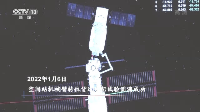 2022年1月6日,空間站機械臂轉位貨運飛船試驗圓滿成功。這是我國首次利用空間站機械臂操作大型在軌飛行器進行轉位。