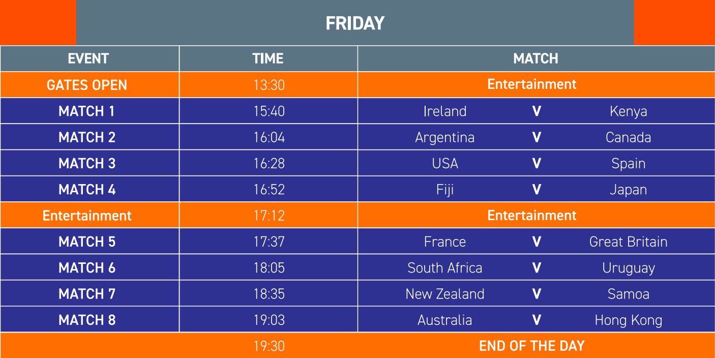 2019年決賽隊伍法國將於首日下午5時37分碰上英格蘭,而在主場勇往直前的港隊在同日尾場遇上力爭衛冕系列賽寶座的澳洲。
