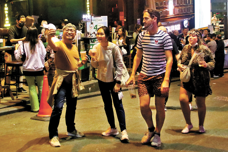 吳先生昨日進入大球場觀看七欖賽事,他形容球場氣氛熱鬧,賽後興致仍濃,所以到蘭桂坊繼續消遣,「平日都不時會與朋友來蘭桂坊飲酒傾談,現在放寬酒吧營業時間就更加好,飲嘢唔使睇住時間。」他表示,即將來臨的世界盃足球賽,或會與三五知己再來睇波「啤一啤」,期望屆時政府能豁免進入酒吧前需做快測的安排。