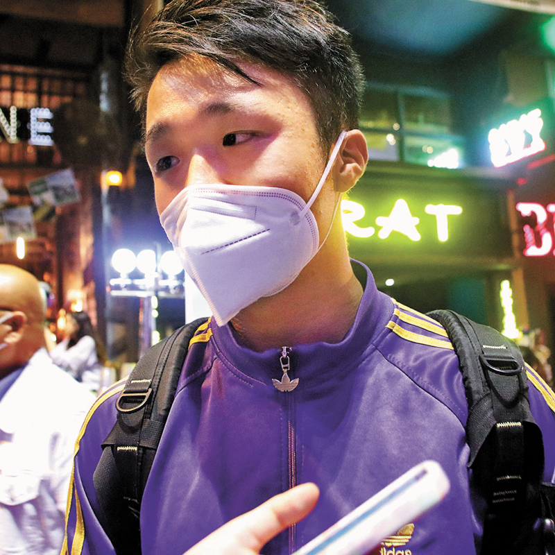 潘先生與朋友下班路過蘭桂坊,發現慶祝賽事的氣氛濃烈,於是便用領取免費酒水券換了一杯酒在路邊酌飲,潘先生表示現場氣氛熱鬧,渾忘疫情,「好開心,香港好似變返以前咁!」他指出酒吧營業時間放寬對市民及旅客而言,是非常重要,「大家可以逗留得更耐,玩得更開心!」不過他亦指若進入酒吧前不需要做快測就更好,「有點麻煩,所以今次不打算入酒吧。」