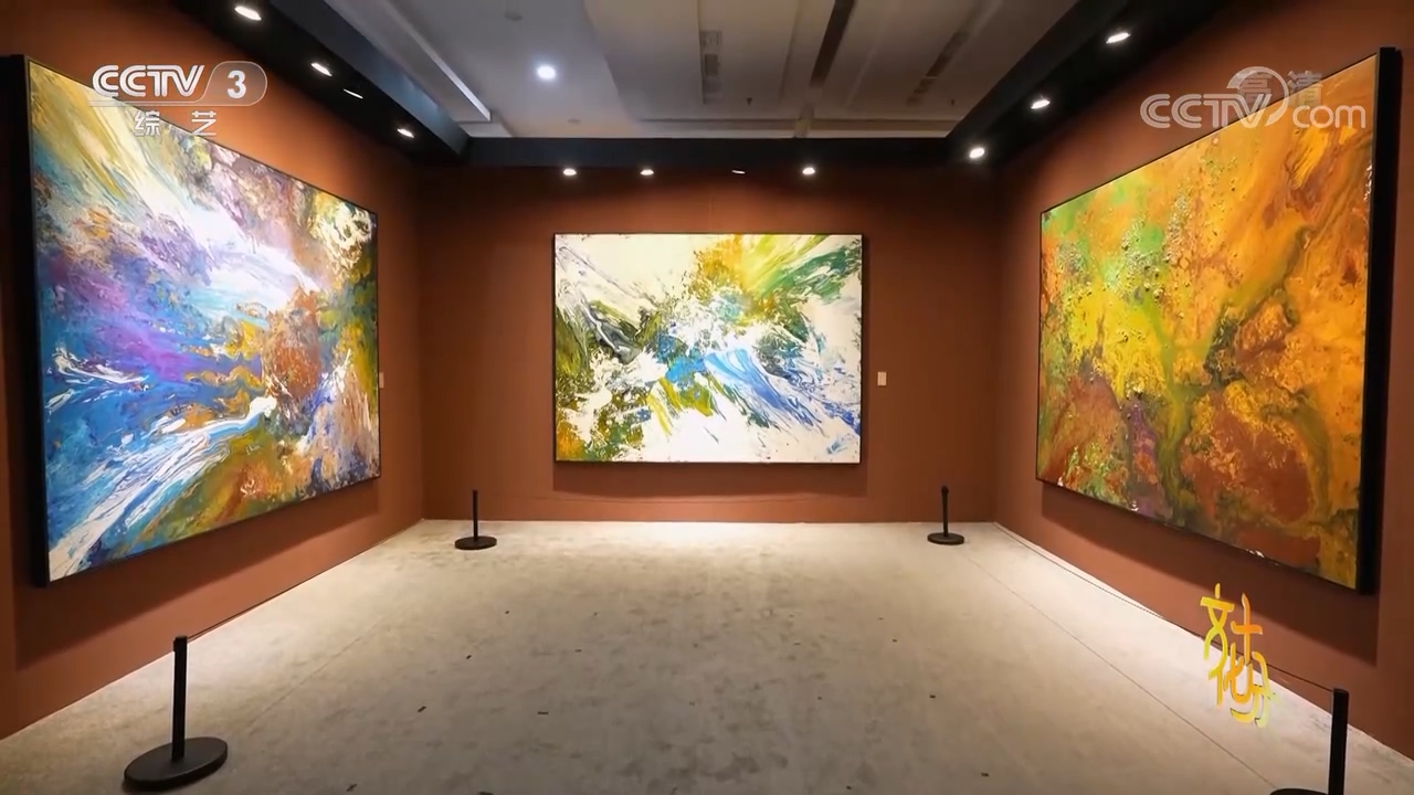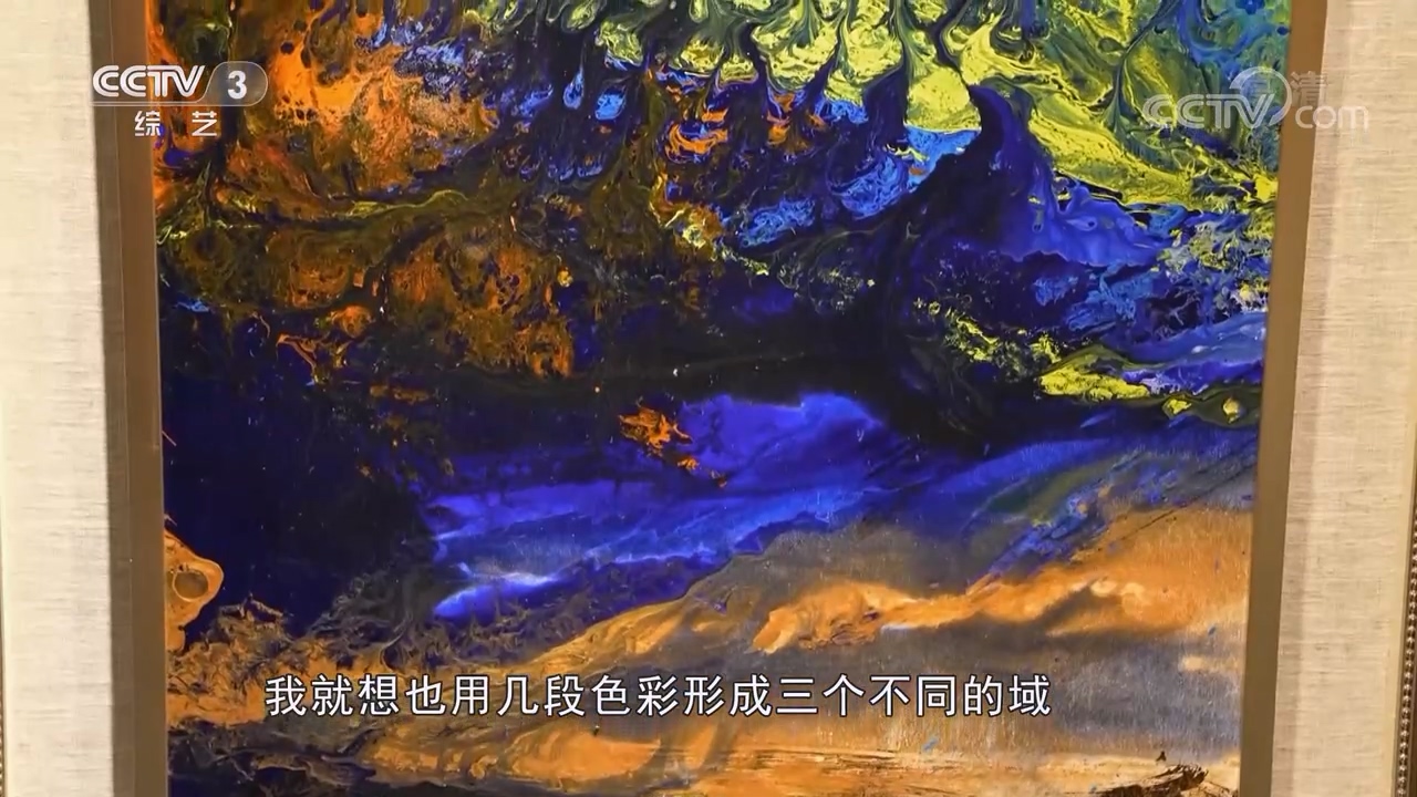 藝術家曹俊:在他的作品裏有幾段非常寬闊的顏色在上面,他那種形式非常現代,所以在我的作品裏邊我就想也用幾段色彩形成三個不同的域,但是我想我是一個中國畫家,所以讓人想着這既是中國山水畫的出處,又有些當代性。通過作品提供給你一種視覺的感受,讓你獲得色彩如音樂般的美好。