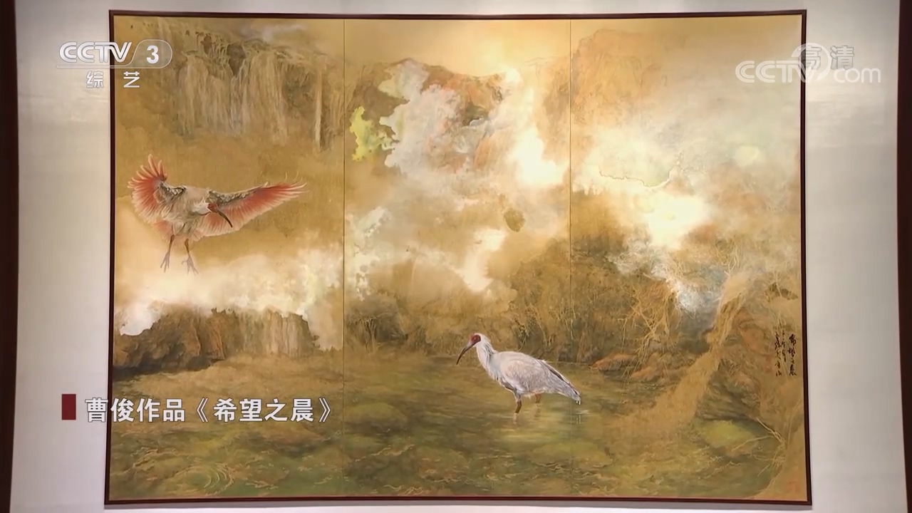 作品《希望之晨》,曹俊花了三個月時間創作完成,他參考了宋代山水、花鳥的畫法,又融合了西方坦培拉技法帶給他的靈感。