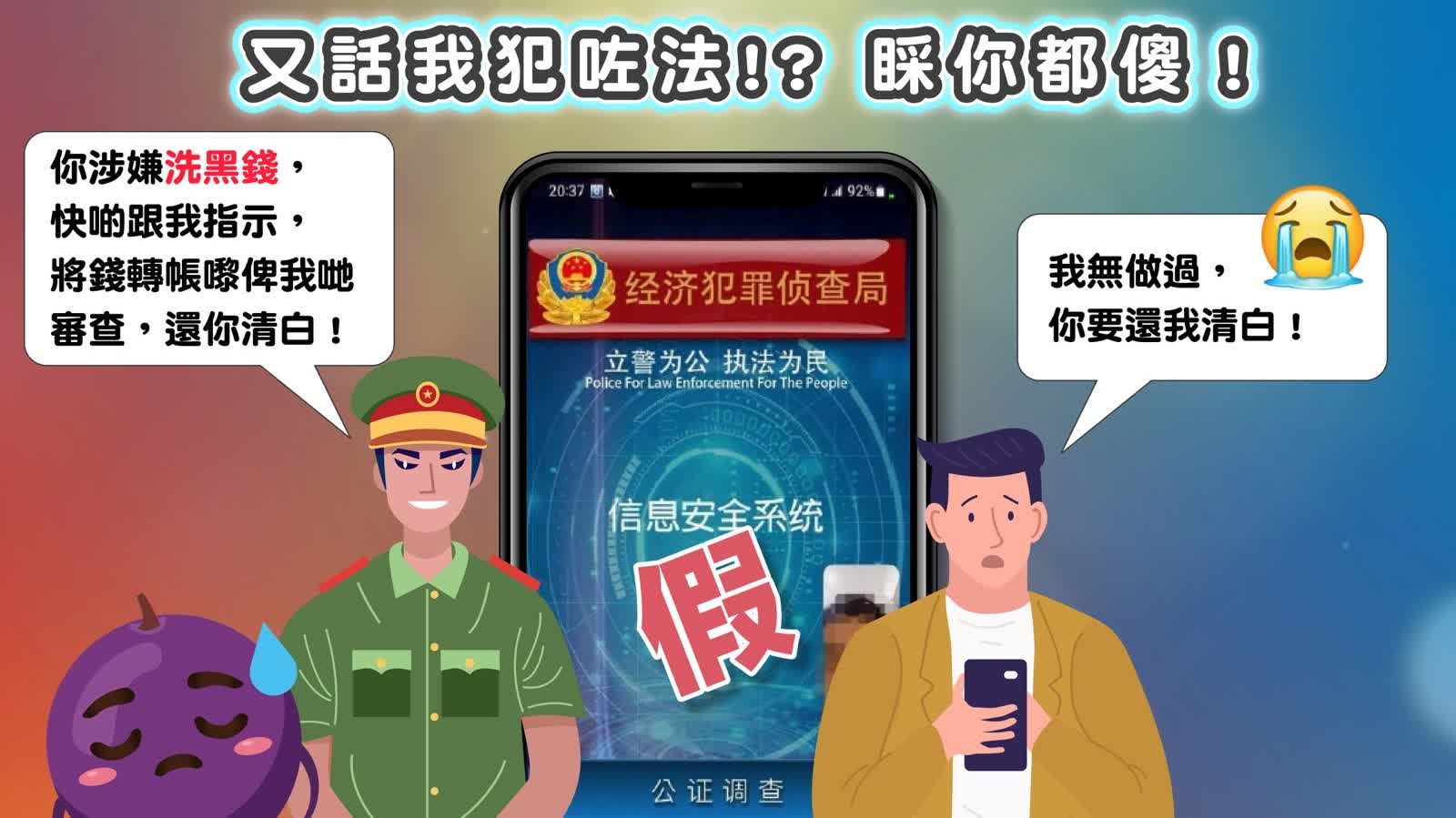 警方提醒,假冒官員騙案常見套路為先收電話「指控」你違反《公眾衞生及市政條例》,再「屈」你經濟犯罪。如收到可疑電話,可第一時間致電「防騙易18222」熱線查詢。