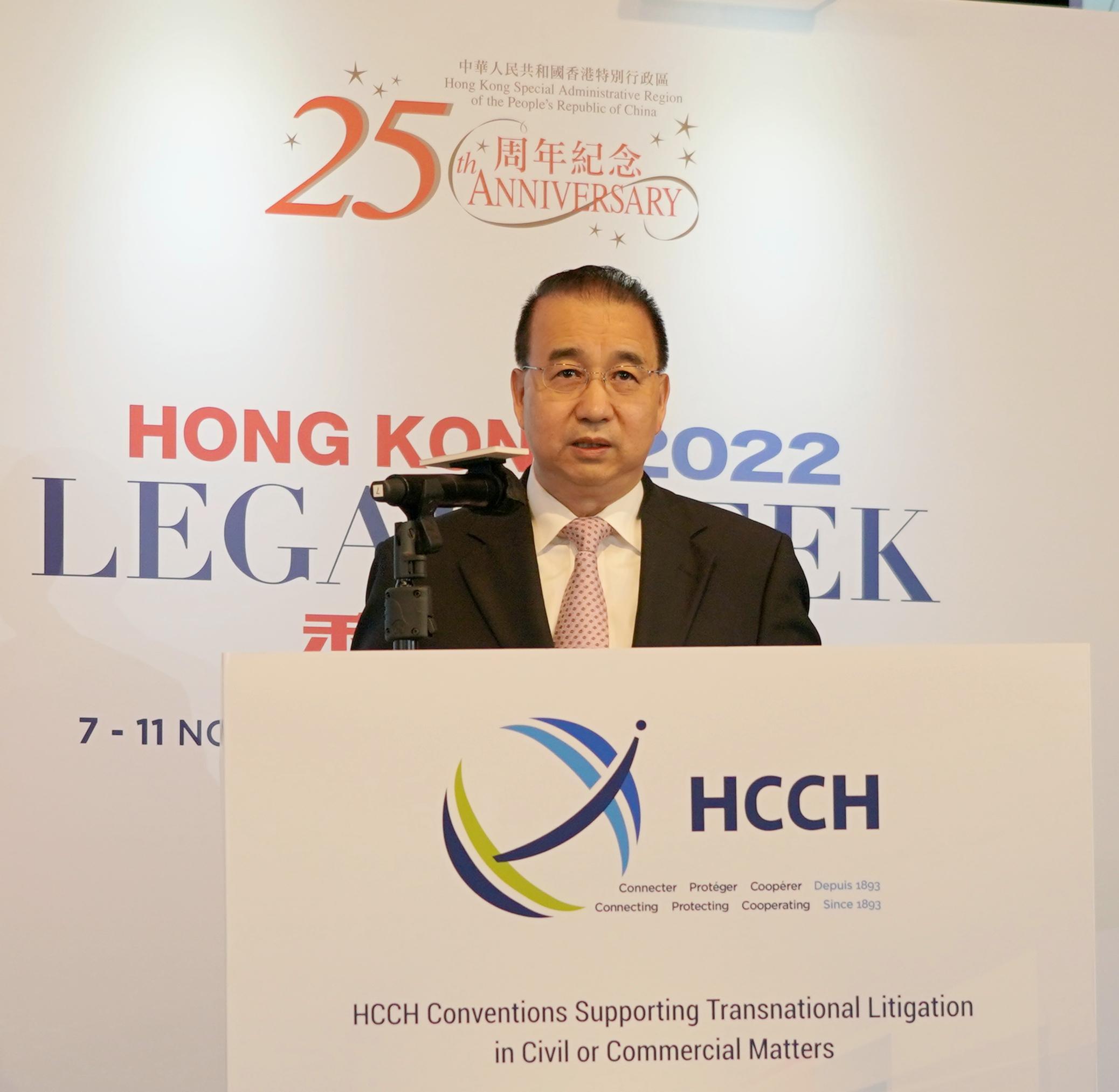 海牙國際私法會議是國際私法領域最具影響力的政府間國際組織,中國於1987年成為海牙會議成員國。此次研討會是香港法律周系列論壇活動之一。特區政府律政司司長林定國、海牙會議秘書長貝納斯科尼、亞太區域辦事處代表趙雲教授等出席活動並致辭。特區、內地及外國知名法律專家學者圍繞國際私法前沿議題進行深入研討。來自20多個國家和地區的400餘名法律界代表以線上線下方式參會。
