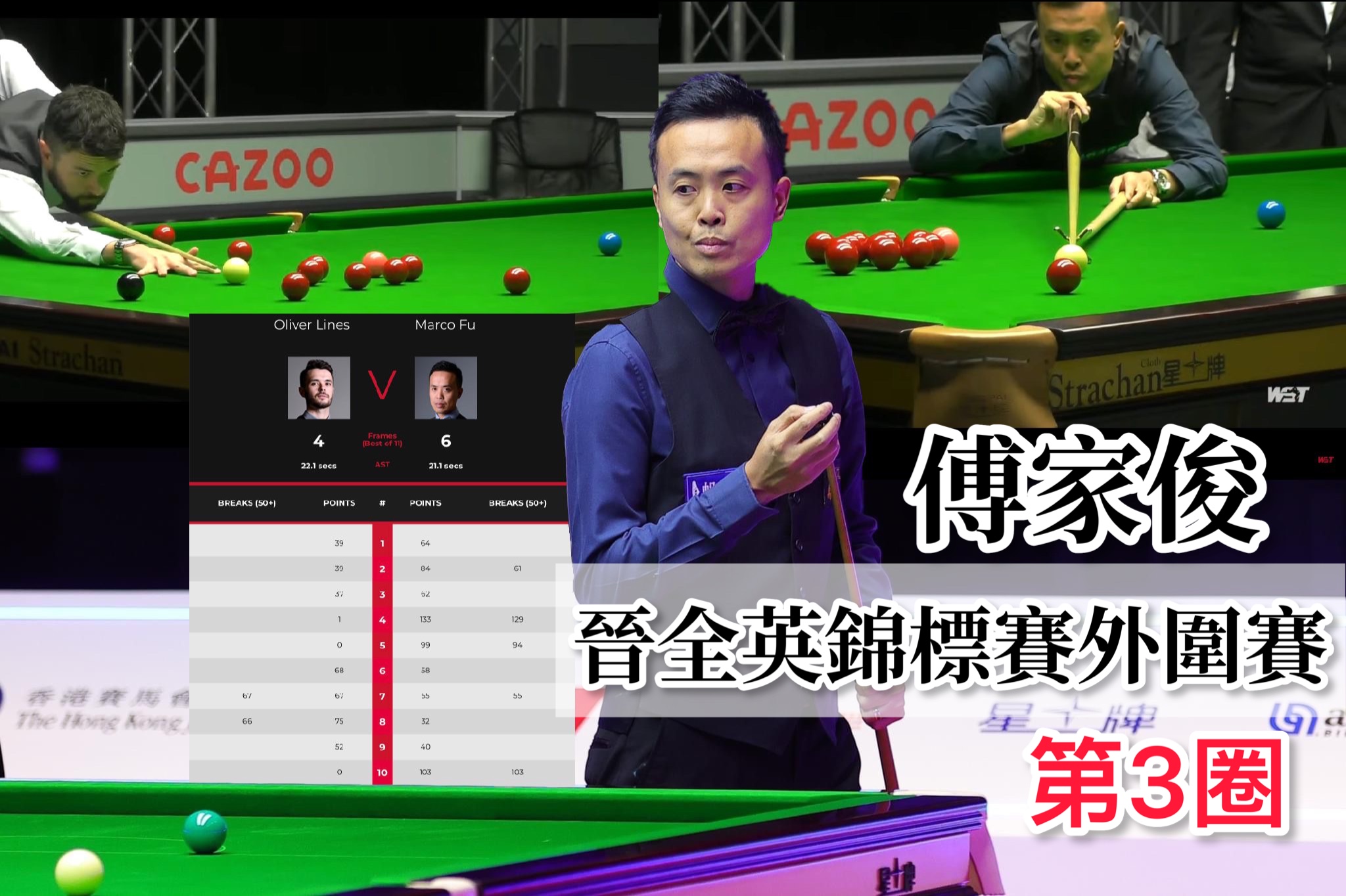 賴斯今仗表現一般,白波走位並不順手,而且其實只是以把握傅家俊的失誤為主,結果來到第10局,傅家俊不敢怠慢,打出一桿108度,以6:4勝出晉級至第3圈賽事,將與英國的咸美頓爭入第4圈。本屆賽事外圍賽第4圈的勝出者,才能晉級到正賽階段。