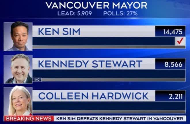 加拿大不列顛哥倫比亞省10月15日舉行市政選舉。代表溫哥華優化城市黨第二度競選市長的沈觀健擊敗其他14名競爭對手,成功當選。