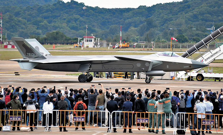 (香港文匯報記者盧靜怡、帥誠、方俊明、黃寶儀 珠海報道)「這是距離殲-20最近的一次!」第十四屆珠海航展8日開幕,殲-20四機編隊「鑽石」隊形亮相珠海航展,轟鳴聲中大炫特技,「雙機」首次展示盤旋等高難動作。更令軍事迷大飽眼福的,是今次殲-20改變「只在空中過,不在地面留」的慣例,「不僅空中過,還在地面留」,在飛行表演後穩穩地降落航展現場,首度近距離展示降落,近距離展示細節,彰顯解放軍信心與中國的自信強盛。
