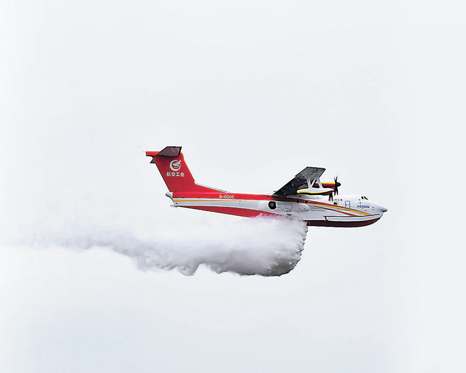 擁有如此龐大投水量的AG600M,是目前世界在研最大的水陸兩棲飛機,可以用於應急救援。滅火救援時,AG600M也如此次飛行表演般投下12噸水。與普通飛機相比,AG600M機身兩側共裝備4個水箱,每個水箱可裝3噸水,既可以在陸地起飛前通過注水口給4個水箱裝滿水,也可以在水面滑行時放下汲水斗給水箱補充汲水,兩種補水模式大大提升了其滅火能力。