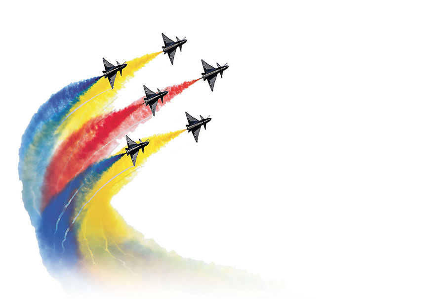 8日上午,空軍「八一」飛行表演隊率先起飛,拉開第十四屆珠海航展飛行表演之序幕,6架殲-10在天空畫出超大彩虹圈,以各類「勁舞」動作展翼雲霄,為觀眾帶來震撼的視覺盛宴。首度亮相珠海航展的殲-16戰機進行飛行展示,也引發觀眾歡呼,特別是上演艙蓋朝下、機腹朝上的「倒飛通場」等高難動作,尤為考驗裝備能力和飛行員的操作水平。而同樣首次在珠海航展露臉的運油-20,空中釋放三根加油管,這是該機首次在公眾面前展示收放加油管,也表明該機具備同時可為三架戰機進行空中加油。