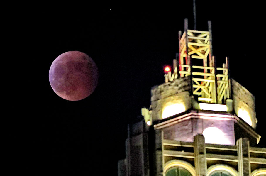 (香港文匯報記者 文森)香港上空昨日上演千載一遇的天文奇景,廣浩蒼穹出現俗稱「血月」、呈現暗紅色的月全食,月球並剛巧遮蓋天王星,出現月掩天王星現象。尖沙咀星光大道、白石角海濱長廊等觀賞熱點,昨日傍晚駐足大批市民仰望星空觀賞歷時4小時多的天文現象,但天公不作美,昨晚雲層厚,月全食若隱若現。錯過昨日的奇遇,香港下次有機會同時親睹月全食及月掩天王星,將會是2,840年後。